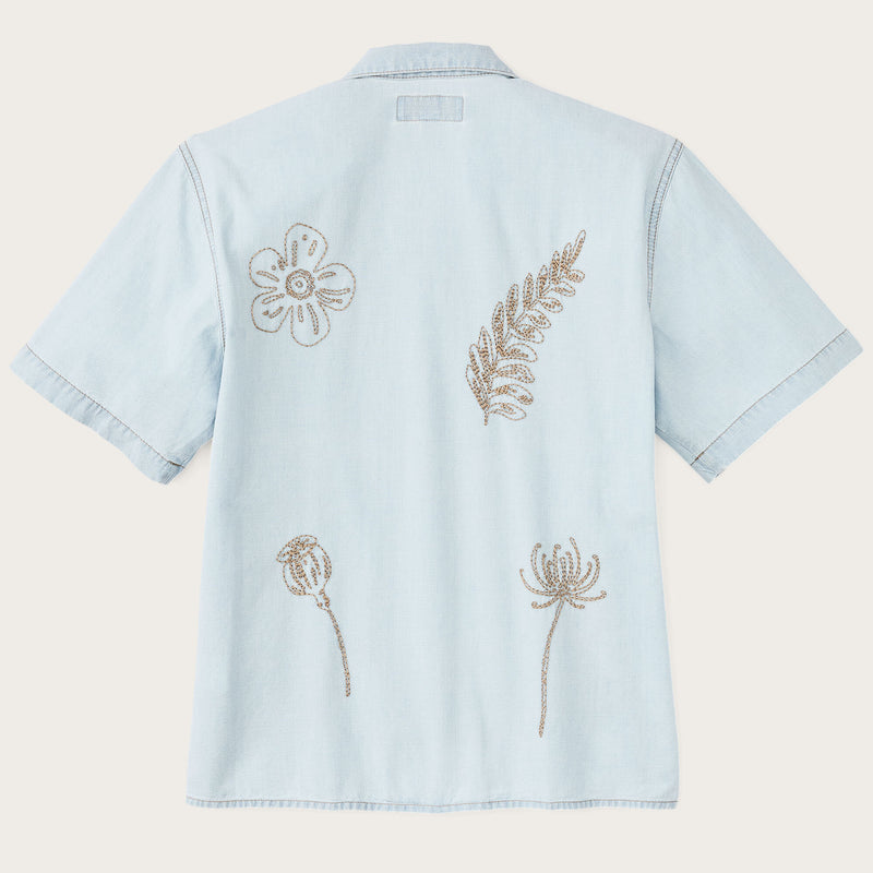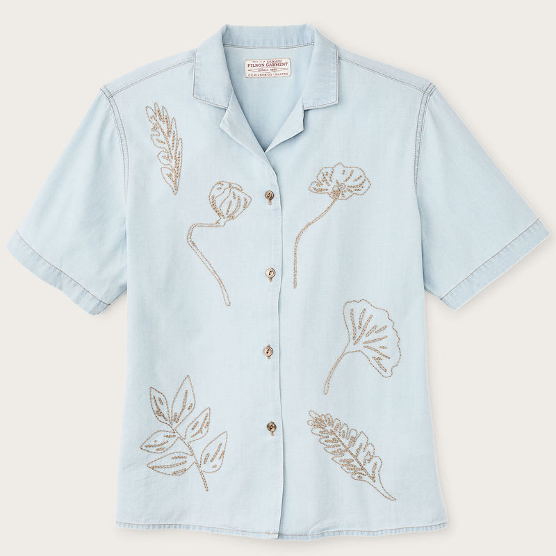 WOMEN’S SHORT SLEEVE EMBROIDERED CAMP SHIRT