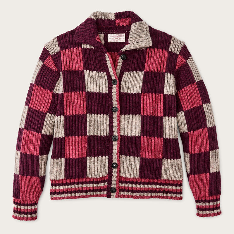 CARDIGAN FEMME EN LAINE À CARREAUX