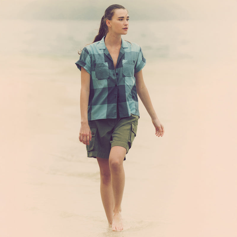 CHEMISE CAMP EN SERGÉ À MANCHES COURTES POUR FEMME