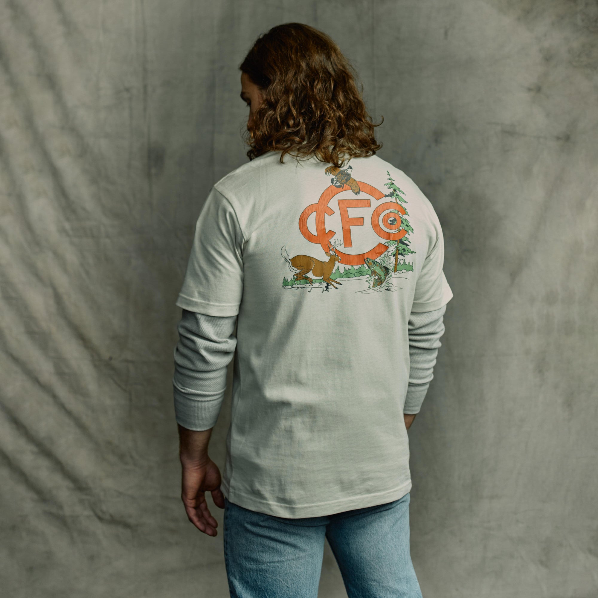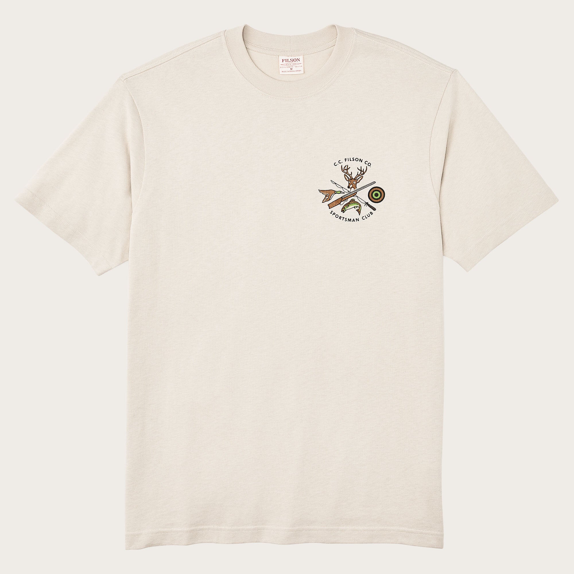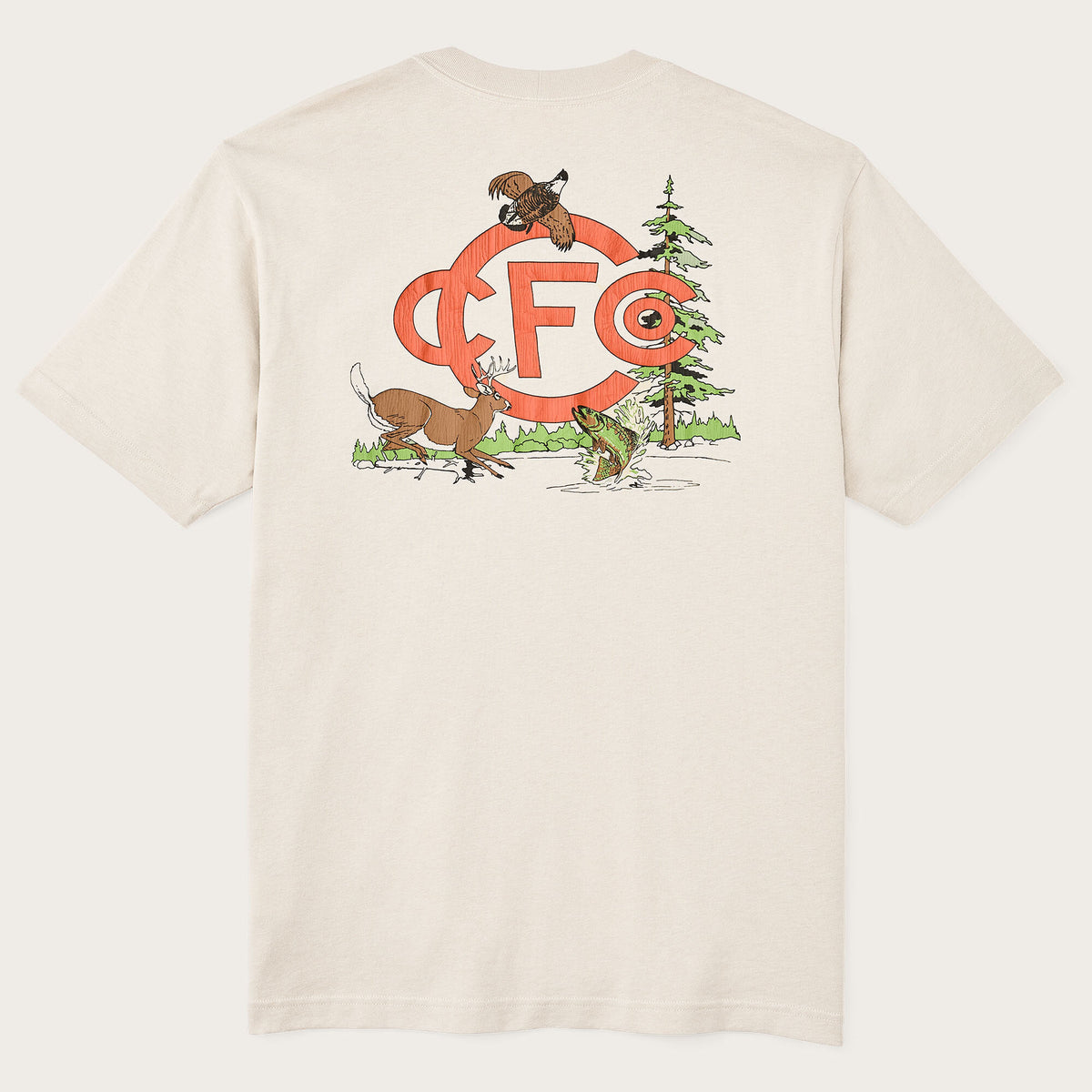 Das Frontier Graphic T-Shirt ist aus robustem Baumwolljersey mit trockenem Griff (184 g) gefertigt. Schwere und Textur heben das Modell von typischen T-Shirts ab. Der strapazierfähige Rippstrickkragen behält auch nach vielen Waschgängen seine Form. Die Grafiken für dieses T-Shirt sind einzigartig und werden direkt bei Filson entworfen.