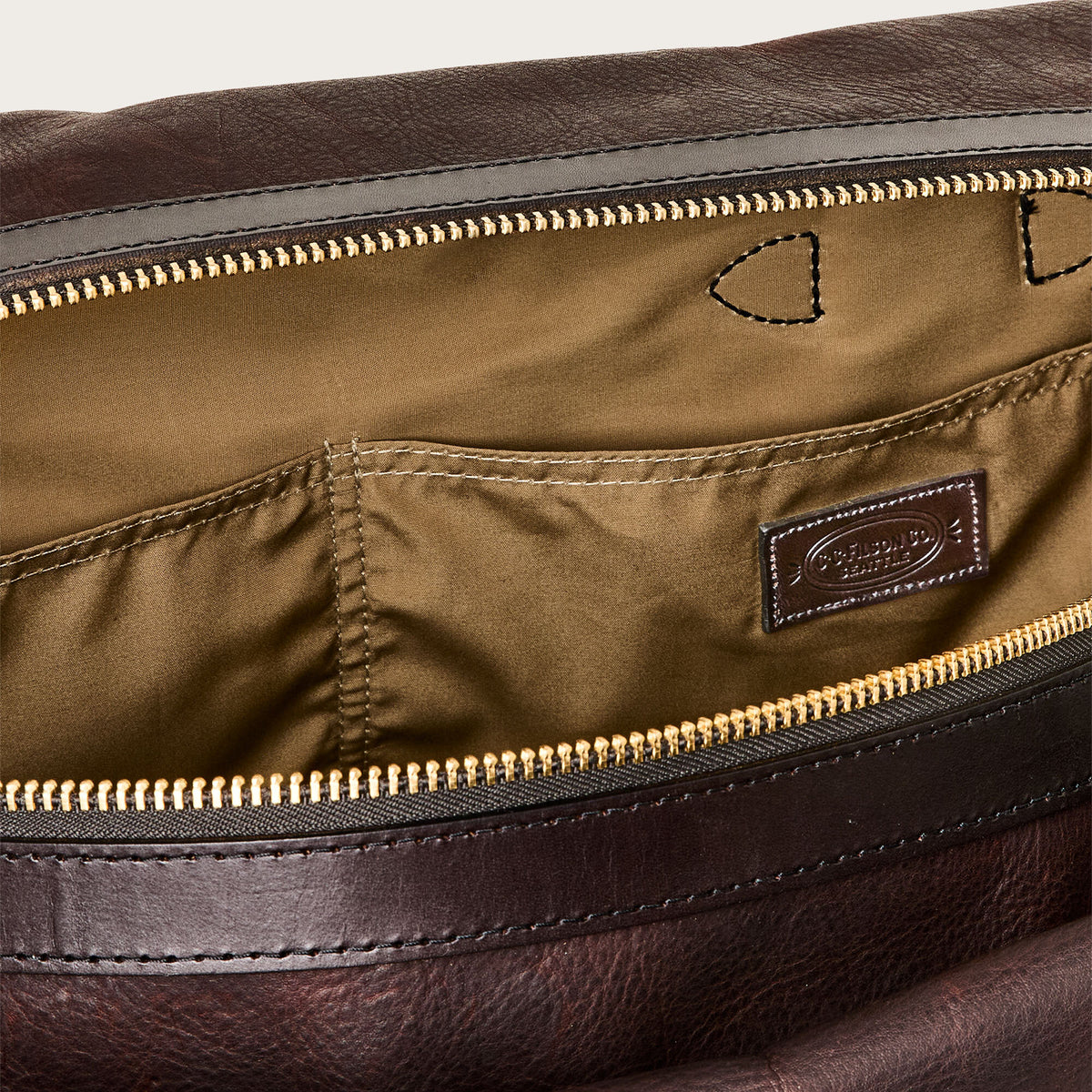 Unsere klassische Medium Duffle – eine der ersten Taschen aus Rugged Twill – wurde 1992 eingeführt und ist seitdem ein zuverlässiger Begleiter auf Reisen. Diese Version aus Leder in Erbstückqualität des ikonischen Modells ist dafür gemacht, über Generationen weitergegeben zu werden. Das Adirondack Leather stammt von der Seidel Leather Corp. in Milwaukee, Wisconsin. Hochwertige, in den USA bezogene Rinderhäute werden mit großzügigen Mengen an Ölen und Wachsen gegerbt – für einen tiefen Glanz und die charakteristische Pull-up-Optik Nach dem Gerben werden die kräftigen Häute trommelgegerbt, um eine natürliche, leicht genarbte Textur zu erzeugen. Anders als bei geprägten oder tiefgepressten Mustern variiert diese natürliche Narbung über die gesamte Haut und macht jedes Lederstück zum Unikat. Die Griffe, der Gurt und die Verstärkungen des Reißverschlusses sind aus pflanzlich gegerbtem Bridle Leather gefertigt, das stark genug für Pferdezubehör ist. Der verstellbare Schultergurt ist mit einem Gleitschutzpolster ausgestattet, das das Gewicht gleichmäßig verteilt, und lässt sich abnehmen, um ein Hängenbleiben zu verhindern. Schwerer YKK®-Metallreißverschluss mit Regenklappe. Gefüttert mit Baumwollcanvas (170 g).