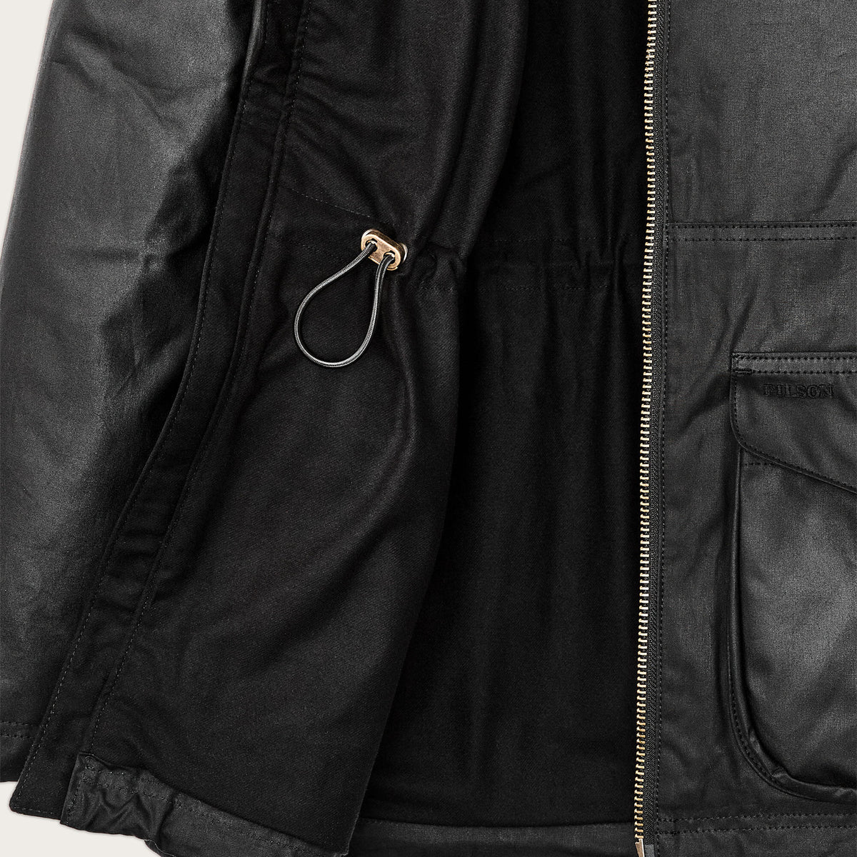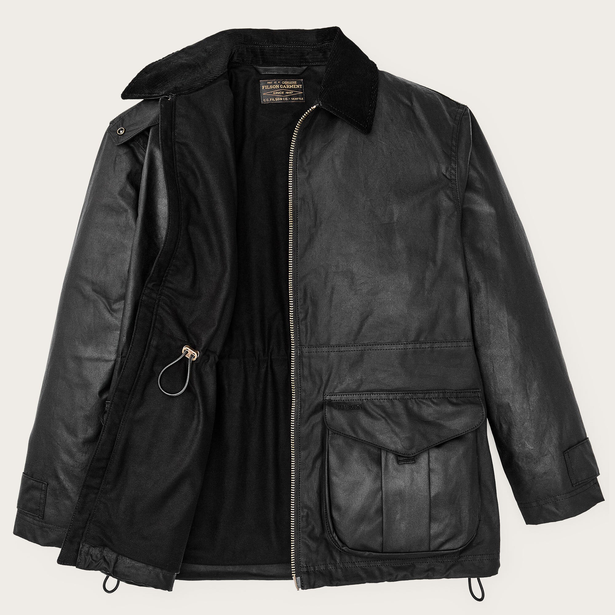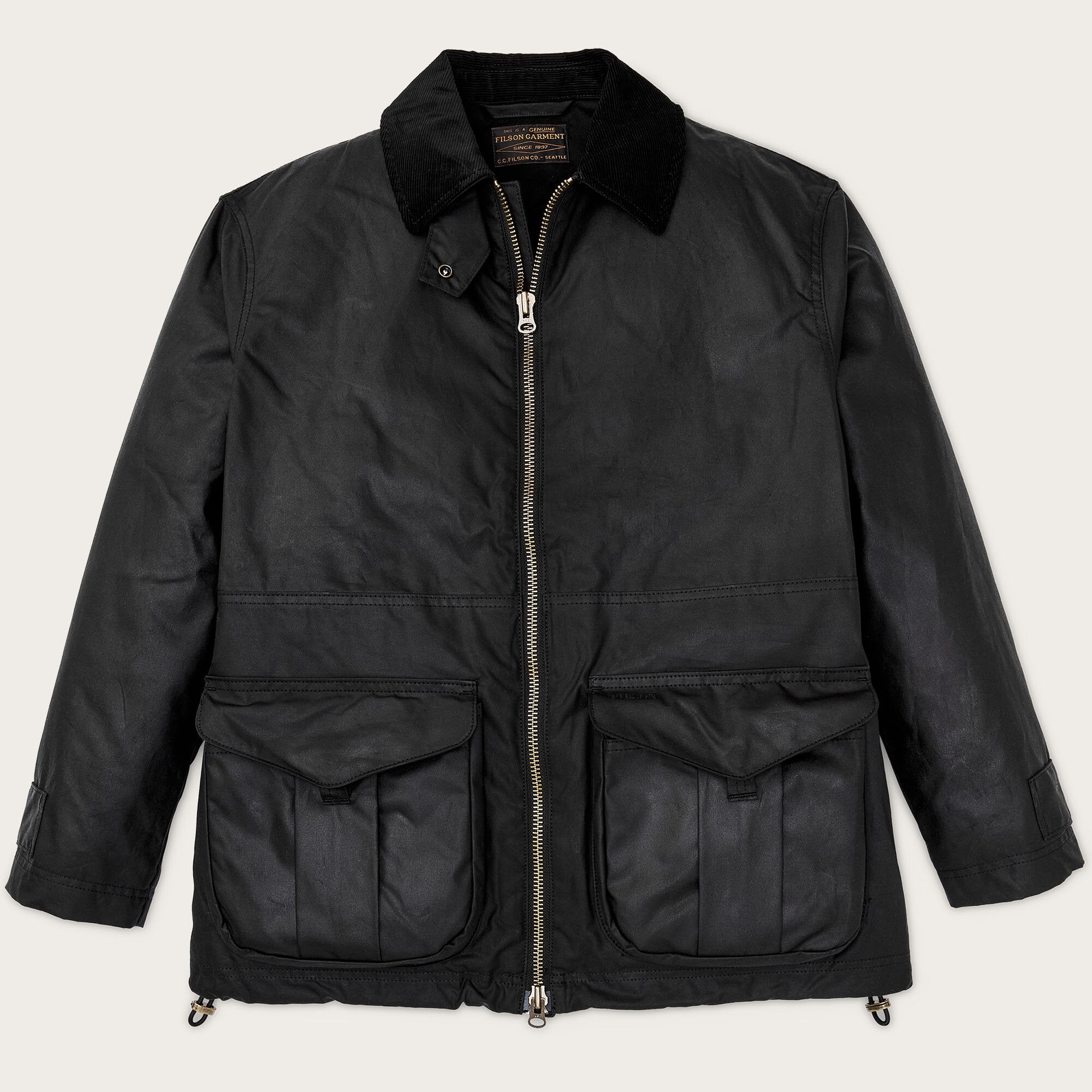 Nicht waschen; chemisch reinigen – Verschmutzungen abbürsten oder mit feuchtem Tuch reinigen. Bei Bedarf nachwachsen, um maximale Wasserdichtigkeit zu erhalten. Um die Übertragung von Öl zu vermeiden, empfehlen wir, einen längeren Kontakt zwischen ölbehandelter Kleidung von Filson mit hellen Stoffen vor allem bei wärmerem Wetter zu vermeiden.