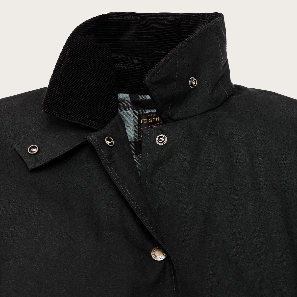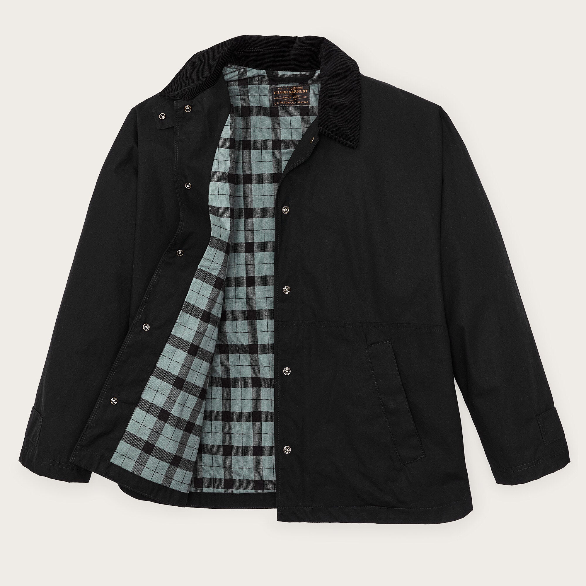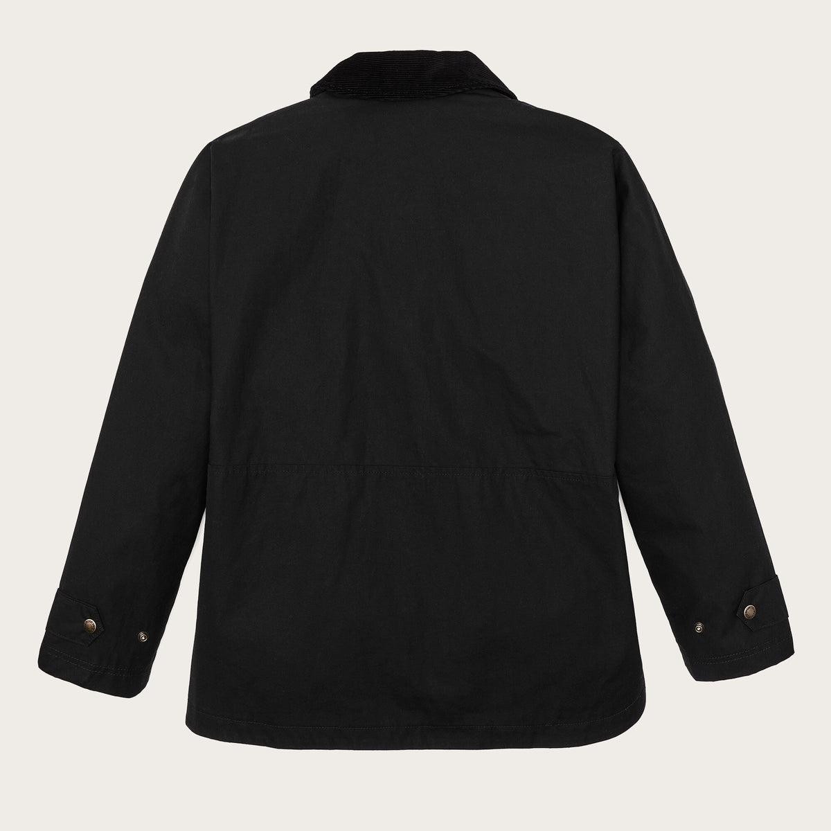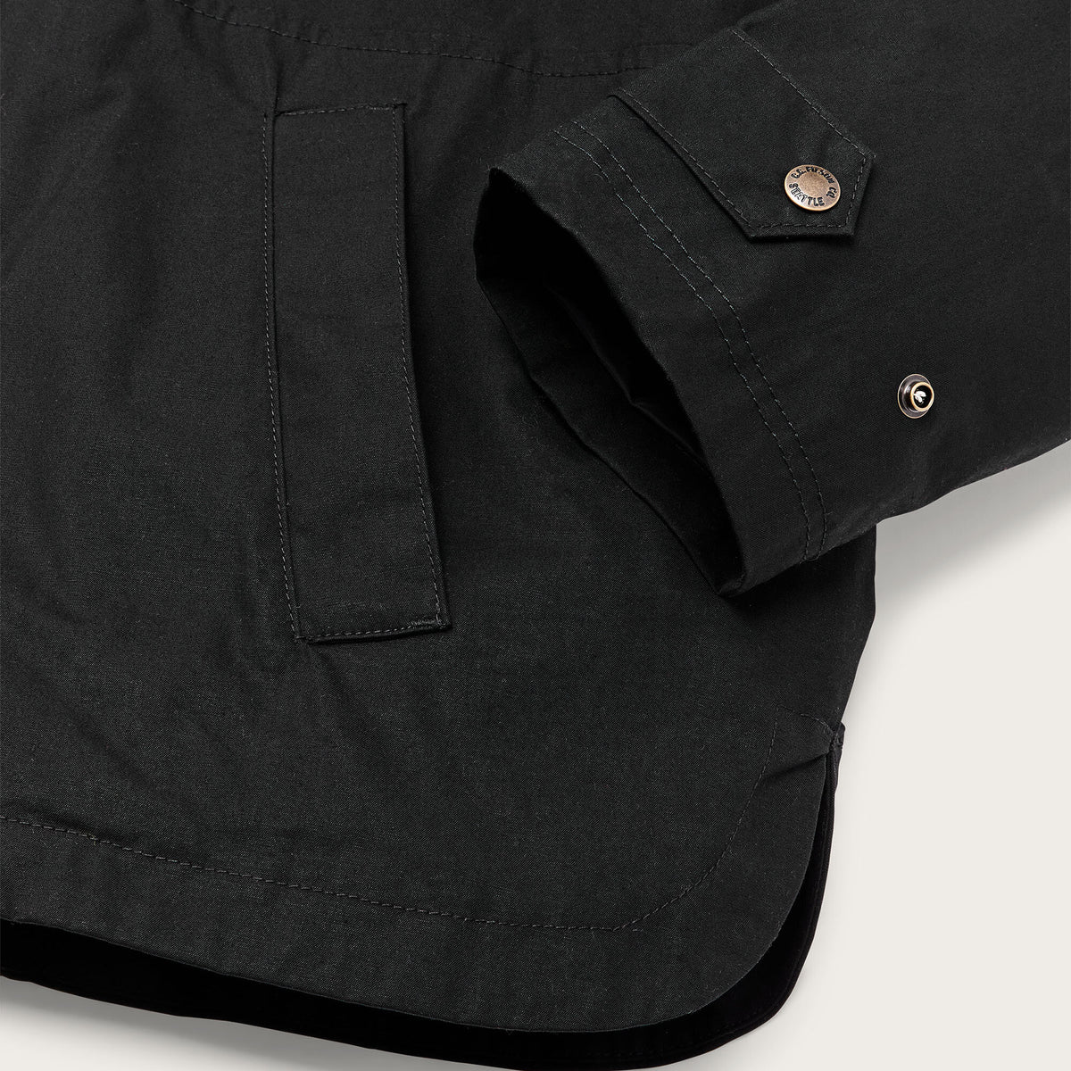Unsere Harbor Front Jacke ist aus gewachster Baumwolle gefertigt und bietet somit traditionellen Wetterschutz. Durch die Kapuzenkonstruktion sind die Nähte über den Schultern nicht dem Wetter ausgesetzt. Die Jacke ist mit unserem warmen Alaskan-Guide-Flannel gefüttert, einem kultigen Lieblingsstoff von Ranchern und Buschpiloten seit drei Jahrzehnten. Der Saum lässt sich mit einem Kordelzug verstellen, die Ärmelbündchen sind mit Druckknöpfen versehen. Die erweiterbaren Cargotaschen verfügen über eine Mitteltrennwand und eine Klappe, die sich bequem mit einer Hand schließen lässt – ein Design, das wir von unseren traditionellen Fischerjacken übernommen haben. Mit Cord eingefasster Kragen. Druckknopfleiste.