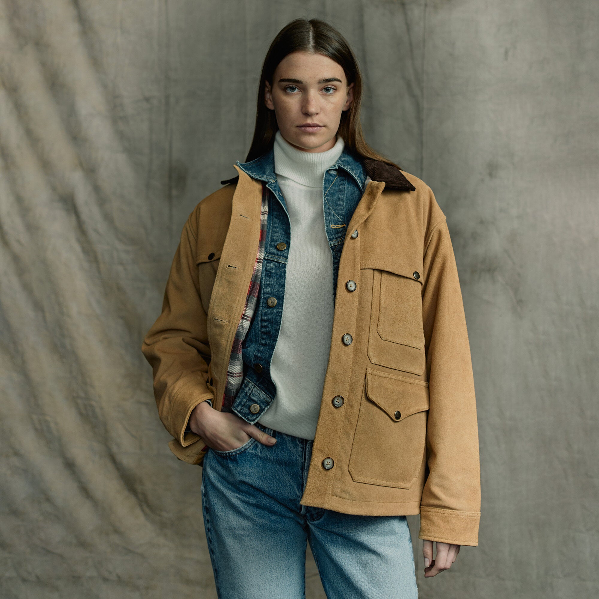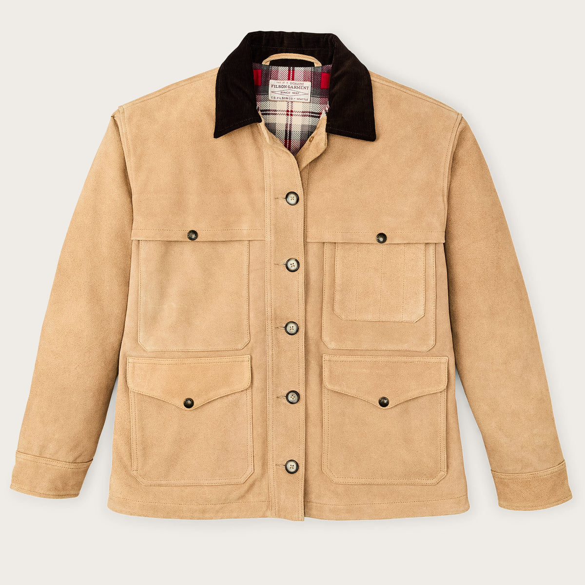 Unsere 1914 patentierte Cruiser Jacke aus Wolle wurde für Förster und alle, die sich gerne im Freien aufhalten, entwickelt. Das Modell wurde oft nachgeahmt und ist auch heute noch ein Bestseller. Diese Premium-Variante behält die Funktionalität des Originals bei, ist aber aus weichem, geschmeidigem Leder gefertigt und kann über Generationen hinweg täglich getragen werden. Die Außenfläche aus Wildleder fühlt sich warm an und das Futter aus gebürstetem Baumwollflanell sorgt für Wärme und Komfort. Die vier Vordertaschen für die wichtigsten Utensilien des Tages sind mit Klappen und Druckknopfverschluss geschützt. Knopfverschluss vorne und an den Ärmelbündchen. Eine Sonderedition für diese Saison.