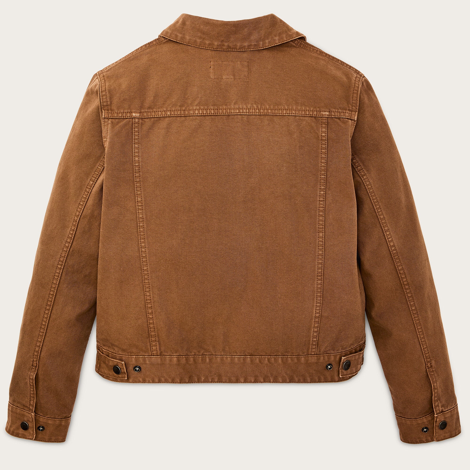 Snap-secure front closure, adjustable cuffs, and waist make it quick and practical in the field or around town. The cropped length sits comfortably at the waist, allowing full mobility whether driving, riding, or hauling gear. Garment dyed and washed, subtle color variations make each jacket unique.