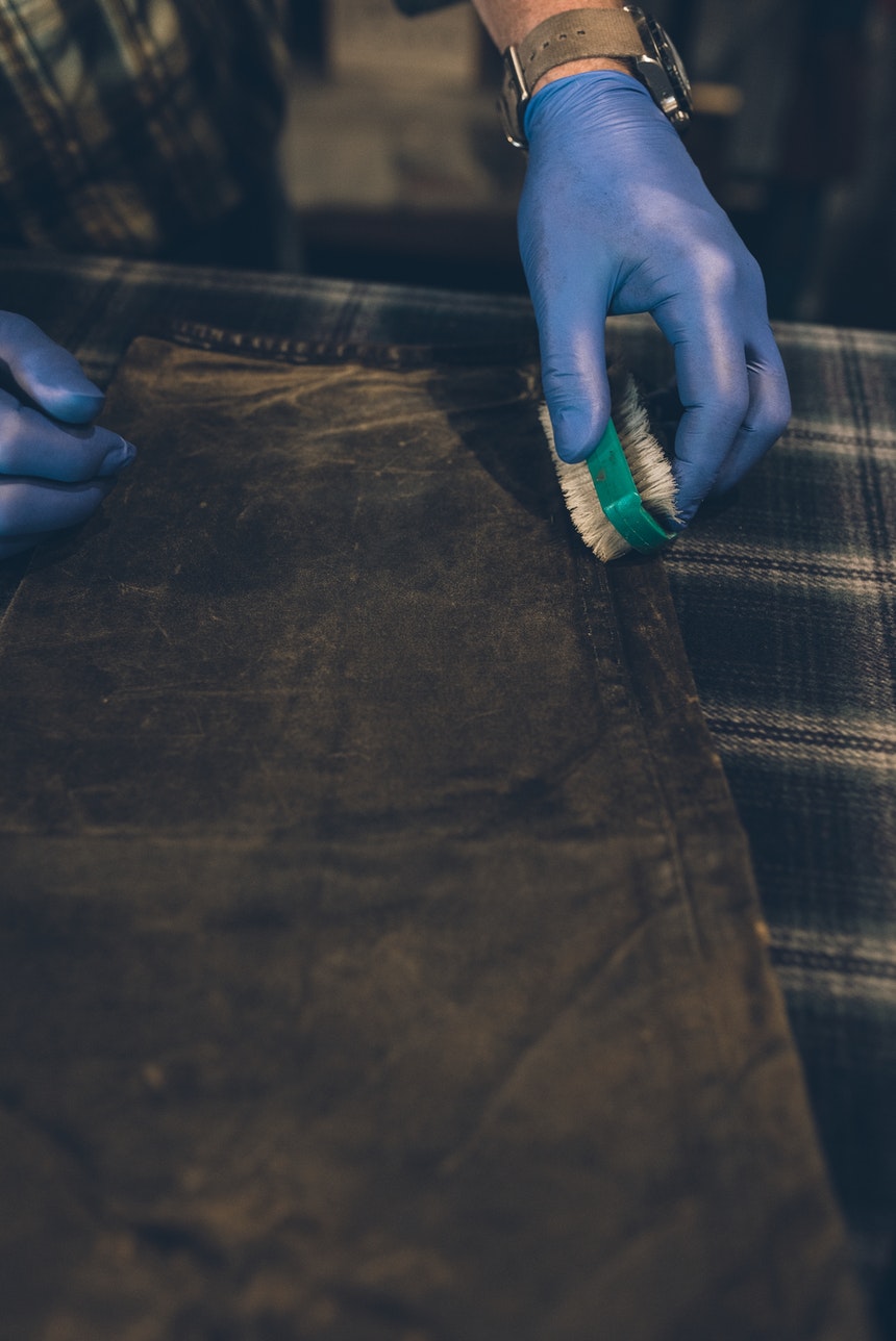 1. Nettoyer le vêtement de toute saleté et de tout résidu. Le coton ciré peut être lavé à l’eau et laissé sécher à température ambiante avant d'être ciré à nouveau. Si la saleté est sèche et incrustée sur le vêtement, une brosse à poils durs en nylon permet d'éliminer les résidus. Veillez à accorder une attention particulière aux coutures, car ces zones peuvent retenir la boue et la saleté.