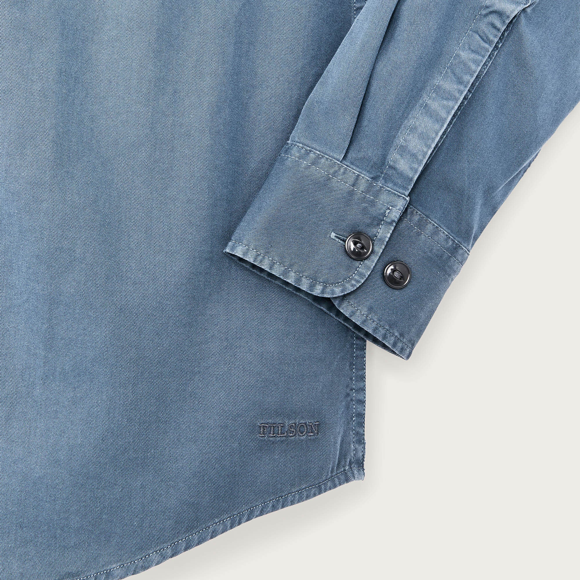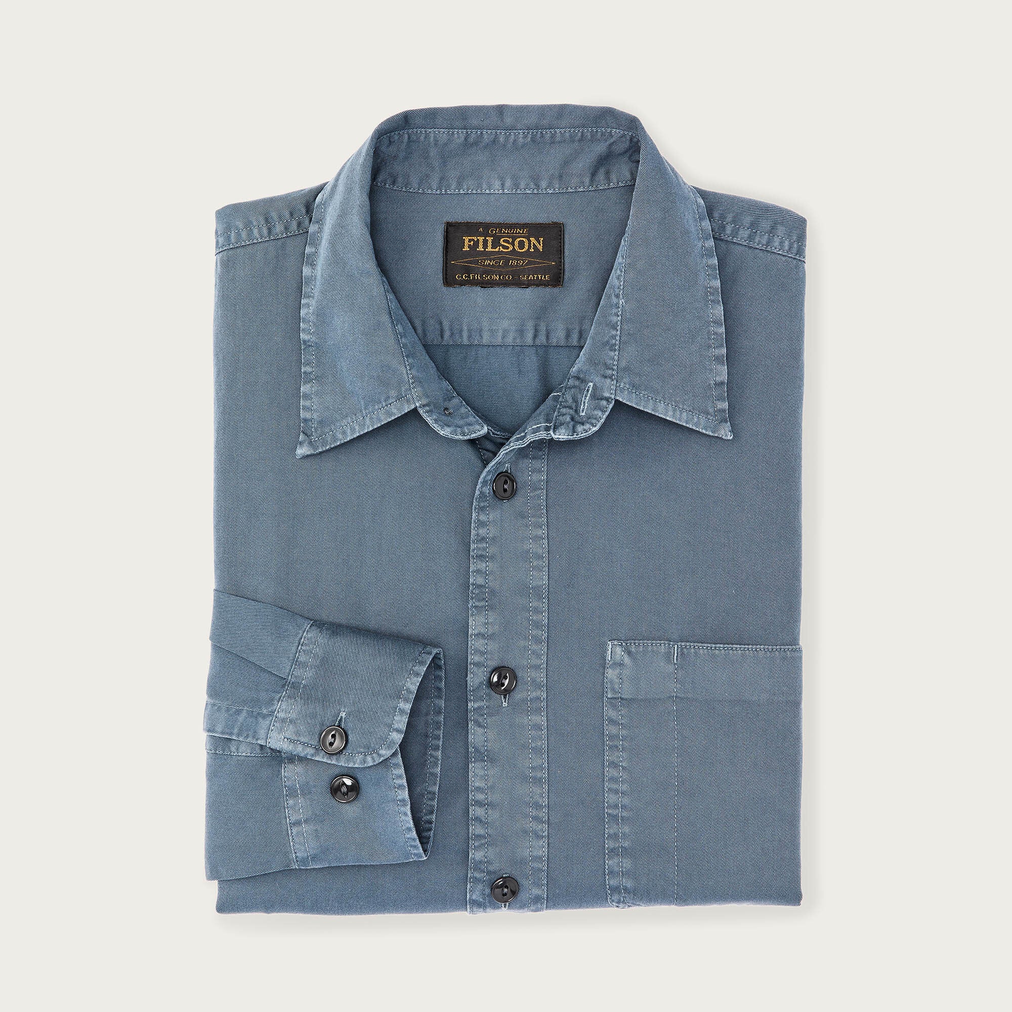 Une pièce maîtresse de la garde-robe. Cette chemise à patte de boutonnage est fabriquée en 100 % coton de première qualité qui conserve sa forme et offre des années de service. La chemise décontractée idéale pour les projets en atelier, pour rencontrer un client afin d'examiner les plans, ou pour aller manger un bout ensuite. Une unique poche frontale sur la poitrine avec un logement pour un crayon de charpentier. Deux plis couchés derrière les épaules. Col droit.