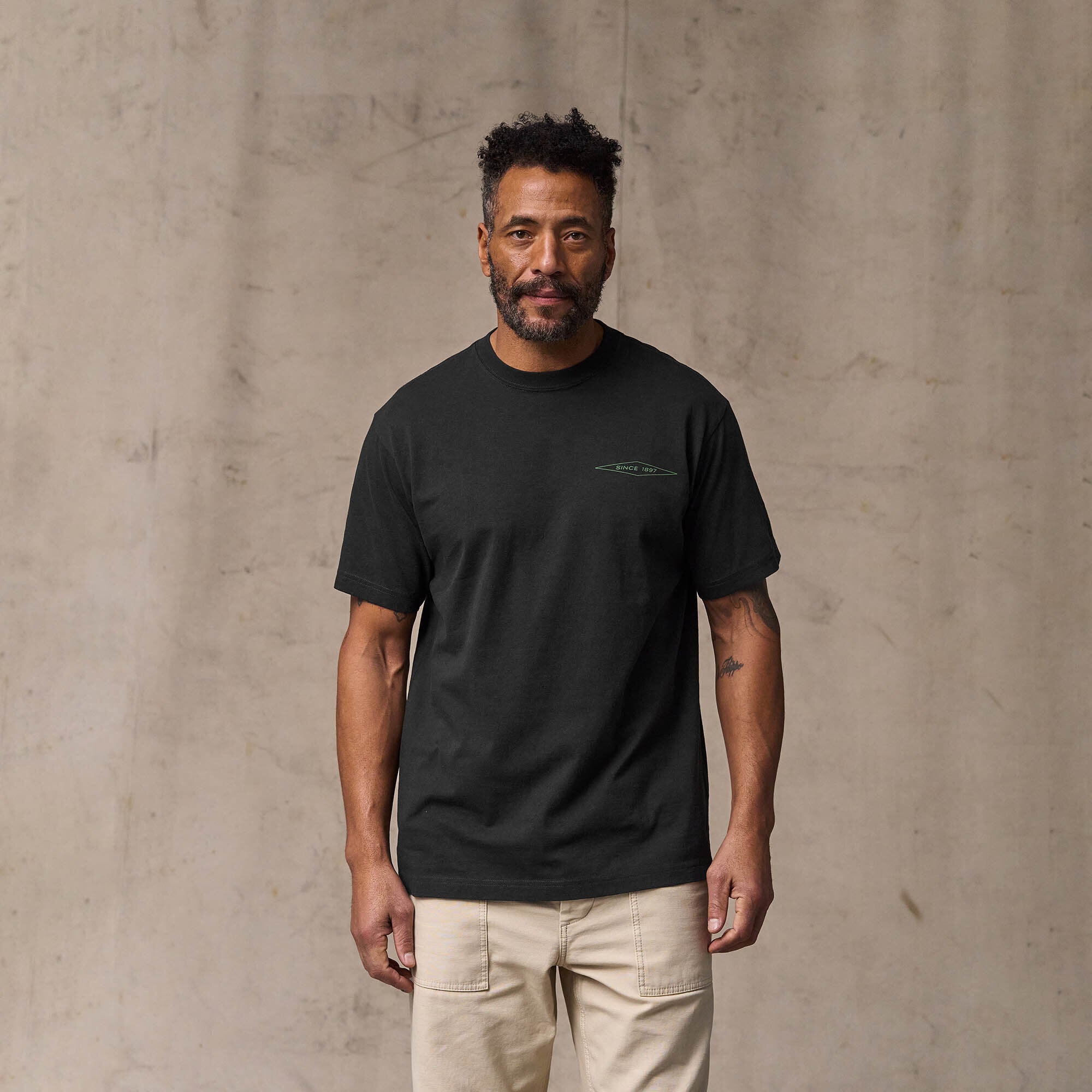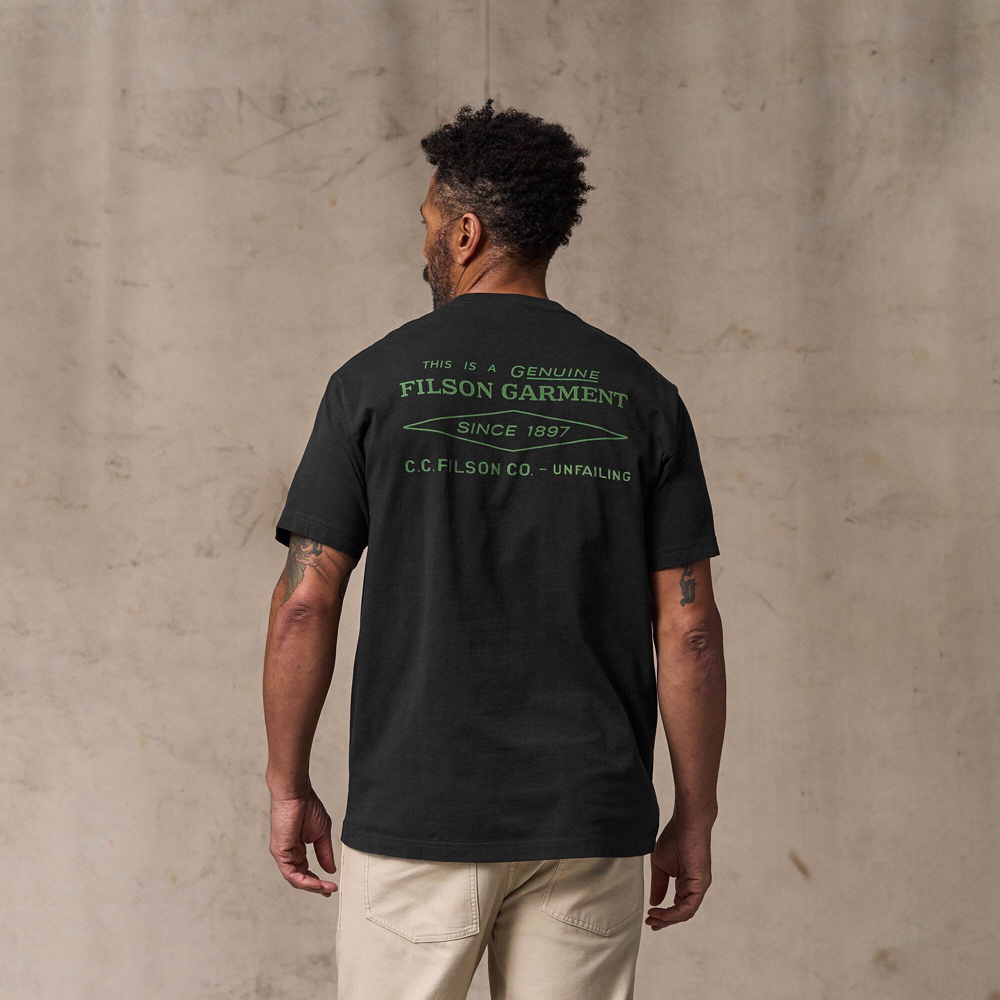 Notre t-shirt Diamond Graphic est fabriqué en coton péruvien de première qualité pour un confort exceptionnel au contact de la peau. Le tissu de 147,4 g est confortable dans la chaleur de l'été ou comme première couche lorsque la température baisse. Le col avec côte 1 x 1 conserve sa forme. Graphisme logo Filson personnalisé.