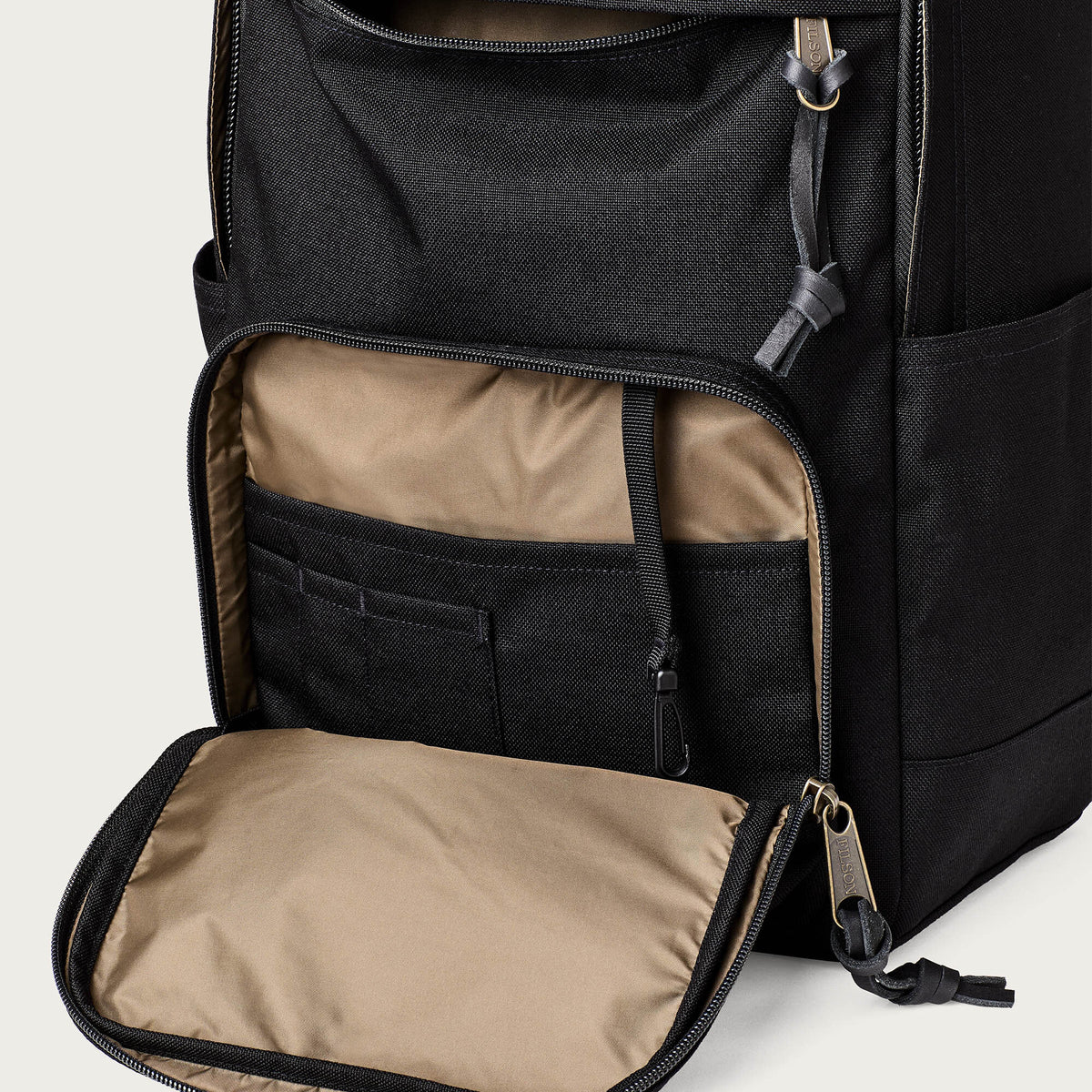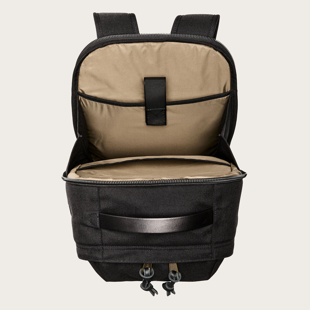 Conçu pour résister aux mauvais traitements pendant les voyages et à l'utilisation quotidienne, le sac à dos polyvalent Dryden de Filson est fabriqué en nylon 1000 D résistant aux intempéries, pour sa capacité de résistance à l'abrasion sur la durée. Avec le même schéma de tissage que le nylon balistique, sa résistance aux déchirures et aux perforations est exceptionnelle. Le fond est renforcé par une double couche pour une plus grande durabilité. Le panneau arrière zippé donne accès à une pochette matelassée pour les ordinateurs portables jusqu'à 15 pouces. Les bretelles sont ergonomiquement profilées pour un meilleur confort de transport. Fermetures à glissière à spirale très résistantes.