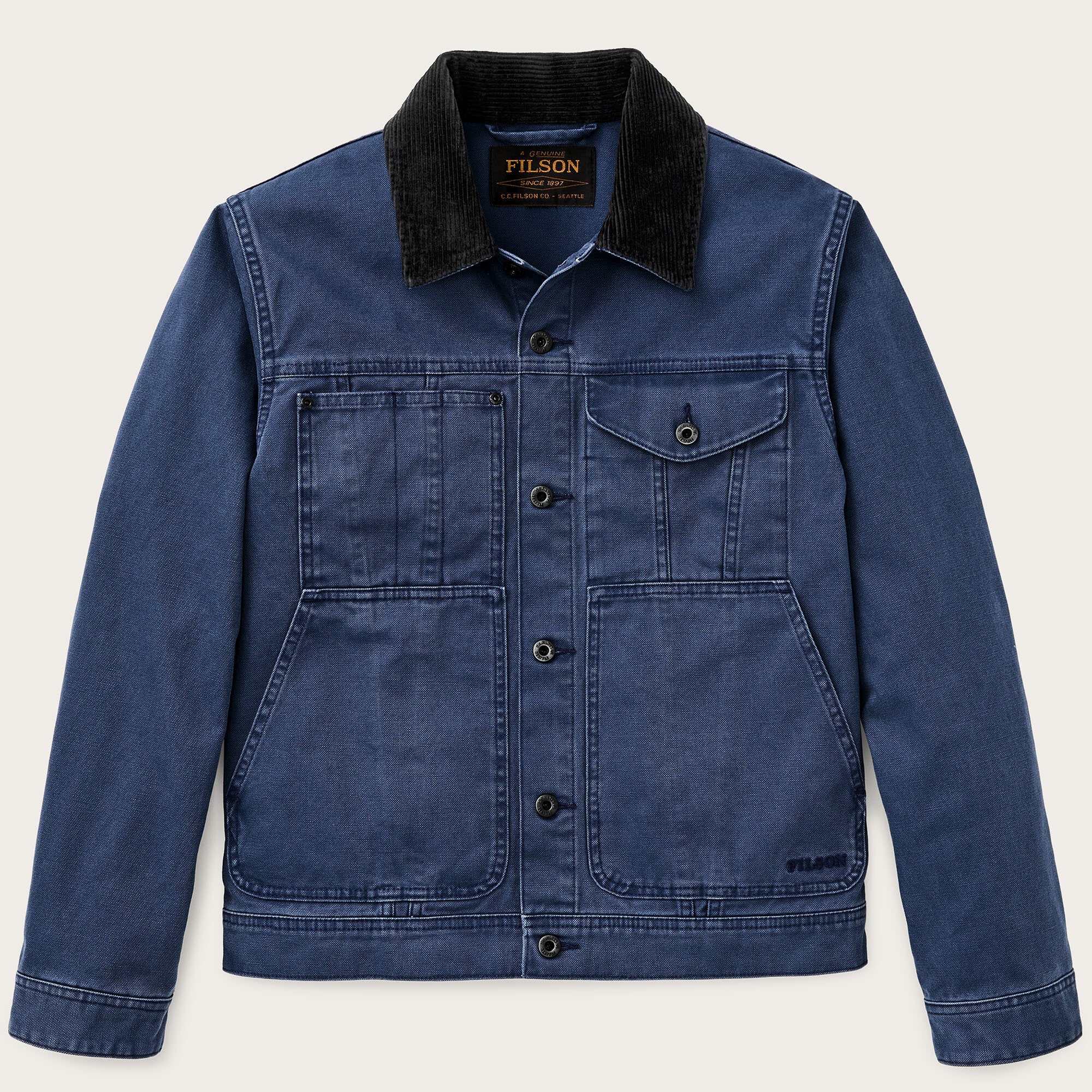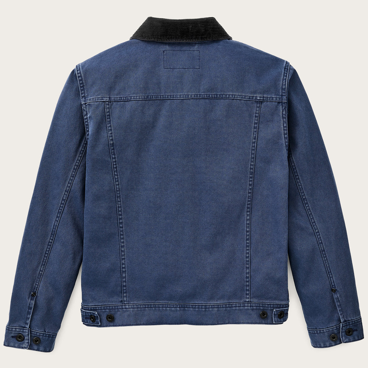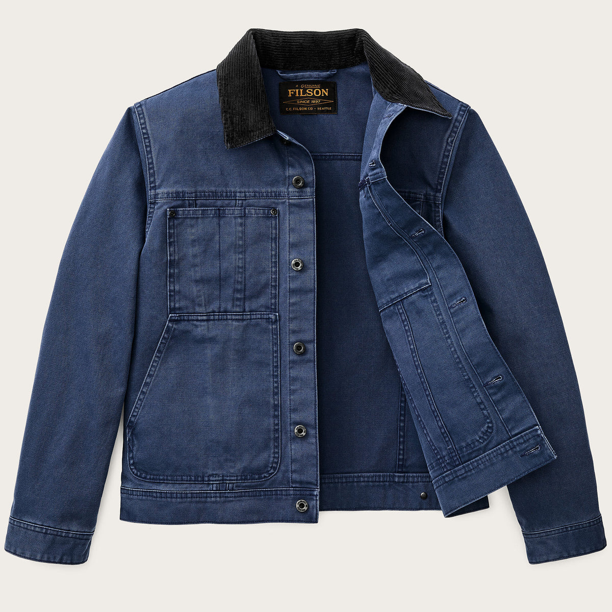Cette veste avec longueur à la hanche est inspirée des modèles vintage portés par les camionneurs et les commerçants. Ferme au départ, la toile s'assouplit avec l'usure, empruntant les lignes et le caractère des longues journées de travail. La coupe reste confortable lorsque vous arrivez, soulevez ou montez et descendez d'une plate-forme, et la longueur aux hanches facilite l'accès aux poches et aux ceintures à outils. Le col est doublé de velours côtelé, ce qui ajoute un peu de confort lorsque vous le relevez contre le vent.