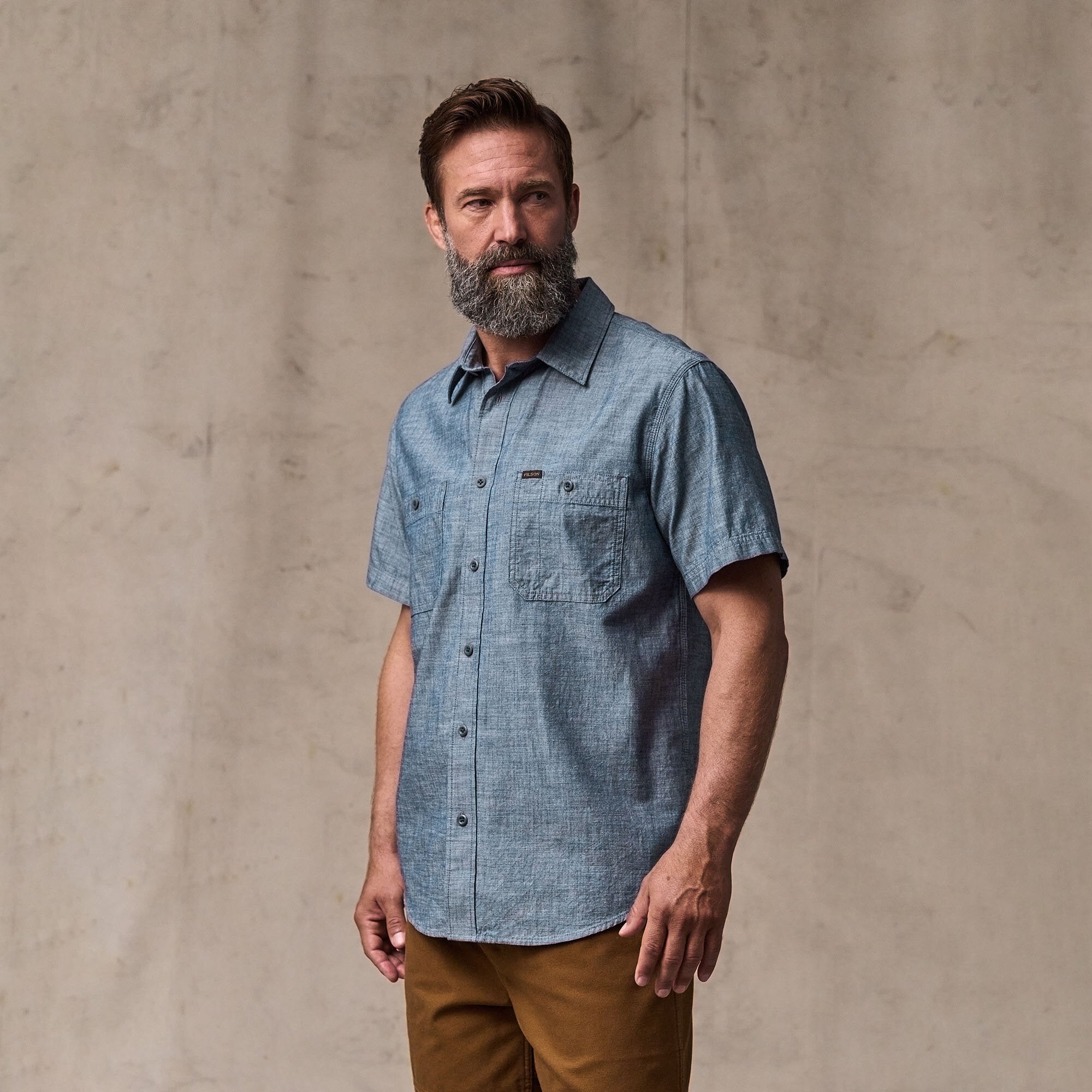 Étonnamment robuste et à la fois suffisamment légère lorsqu’il fait chaud, notre chemise Embroidered Chambray deviendra l’une de vos pièces préférées. Elle est fabriquée en 100 % chambray de coton de poids moyen, un tissu réputé pour sa robustesse dans les chemises de travail. Comme le denim, ce tissu à chaîne endroit est tissé avec des fils de chaîne et de trame de couleurs différentes, mais dans une armure toile symétrique par rapport au motif sergé du denim. Broderie nautique personnalisée au dos. Poches de poitrine fermées par des boutons, la gauche comportant un logement pour les crayons. Deux plis derrière les épaules pour faciliter les mouvements.