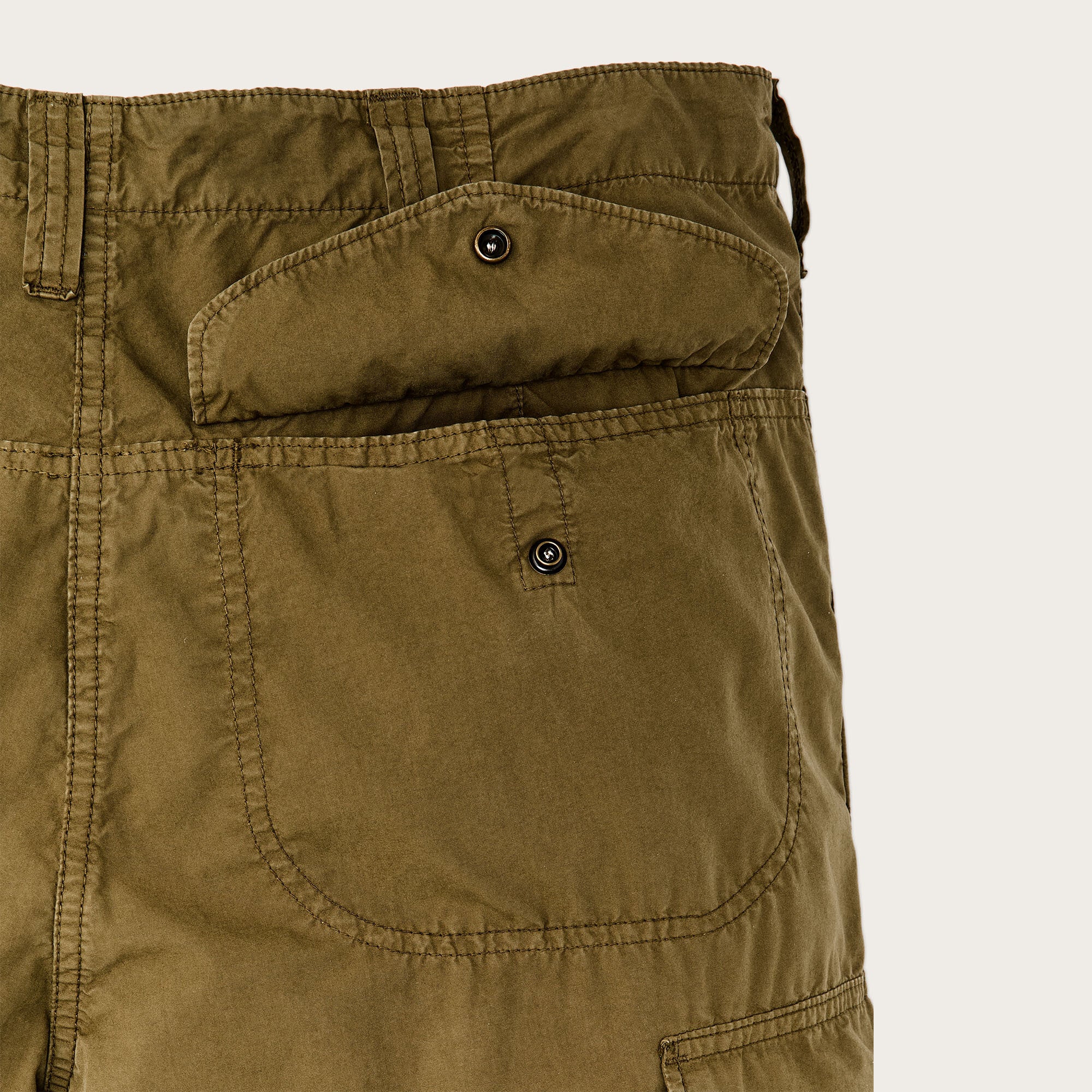 Les généreuses poches cargo latérales sont dotées de soufflets extensibles et sont fermées par des boutons-pression cachés. Les poches avant et arrière sont protégées par des rabats pour garder le contenu en sécurité, et la bande de ceinture se ferme à l'aide de boutons résistants à l’écaillage et d'une solide fermeture à glissière en métal.
