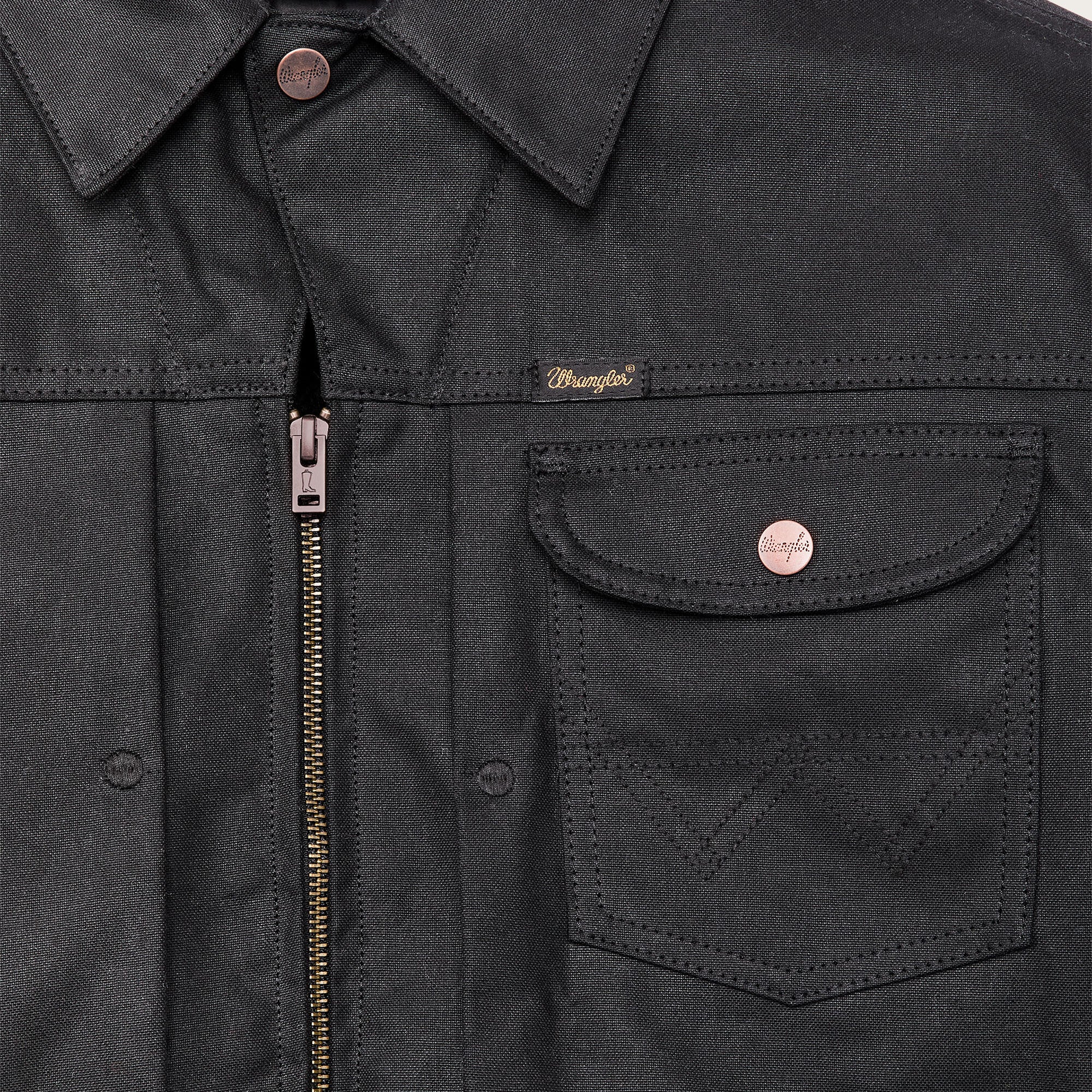 La veste Adventure Jacket est un modèle court intemporel conçu pour le terrain, le travail et le ranch. Fabriquée en Tin Cloth, notre toile cirée résistante qui protège les forestiers, les commerçants et les éleveurs depuis plus d'un siècle. Avec un poids de 397 g, elle pèse deux fois plus lourd que les imitations. Doublée de notre emblématique laine Mackinaw chaude au niveau du torse et d'une isolation en polyester facile à superposer au niveau des manches. Les poches mains passepoilées sont coupées à l'angle idéal pour faciliter l'entrée, et un rabat à bouton-pression protège le contenu de la poche de poitrine. Fermeture à glissière sur le devant. Pattes d’ajustement de l'ourlet par boutonnage. Broderie Wrangler signature au dos.