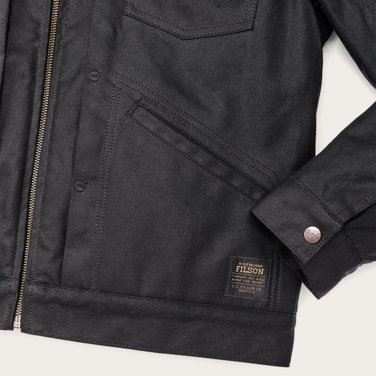 Ne pas laver ou nettoyer à sec – brosser ou essuyer avec un chiffon humide. Appliquer une nouvelle couche de cire si nécessaire pour maintenir une résistance maximale à l’eau. Pour éviter le transfert de l’huile, nous recommandons d’éviter tout contact prolongé entre les articles Filson à finition huilée et les tissus de couleur claire, en particulier par temps chaud.