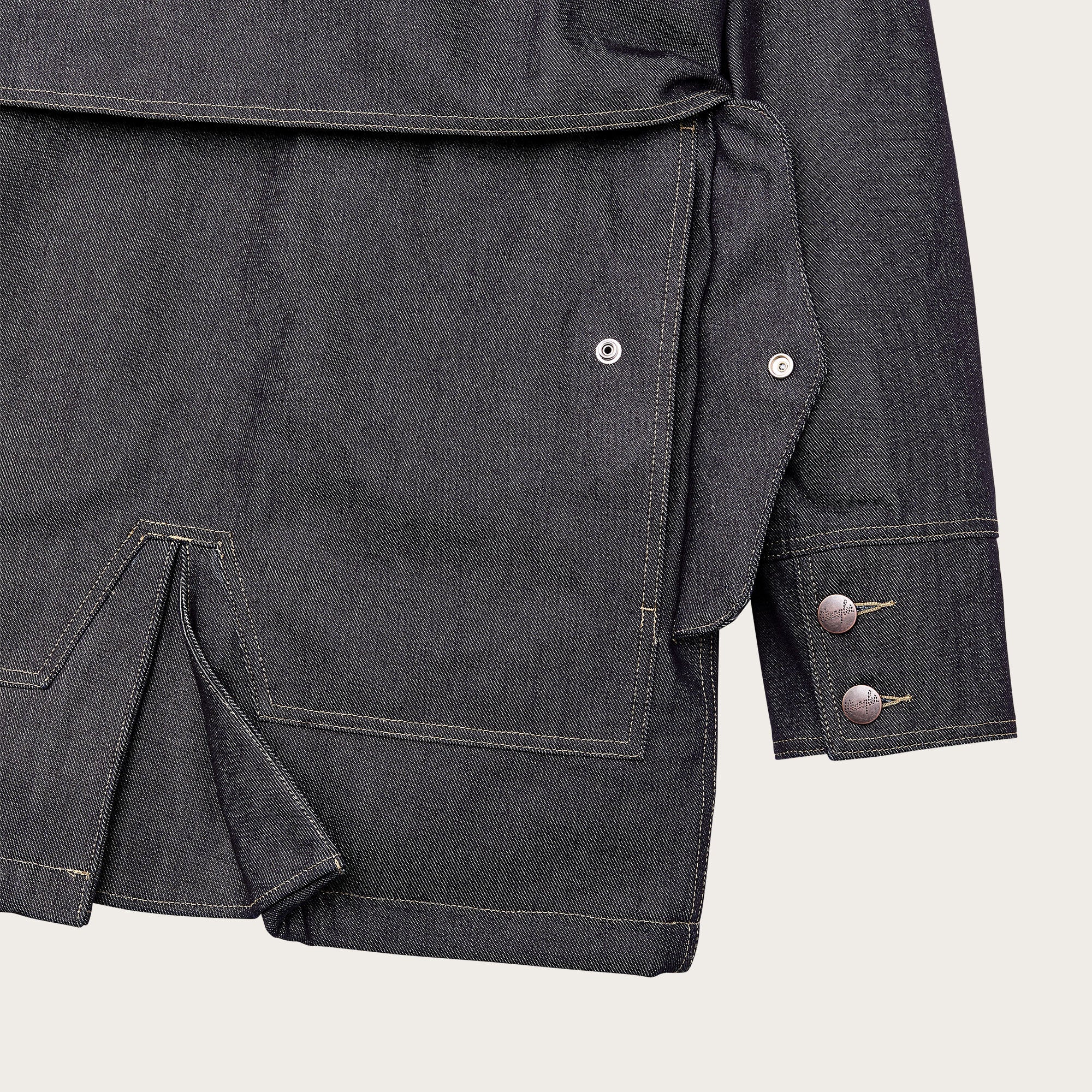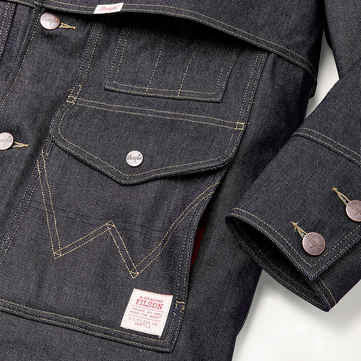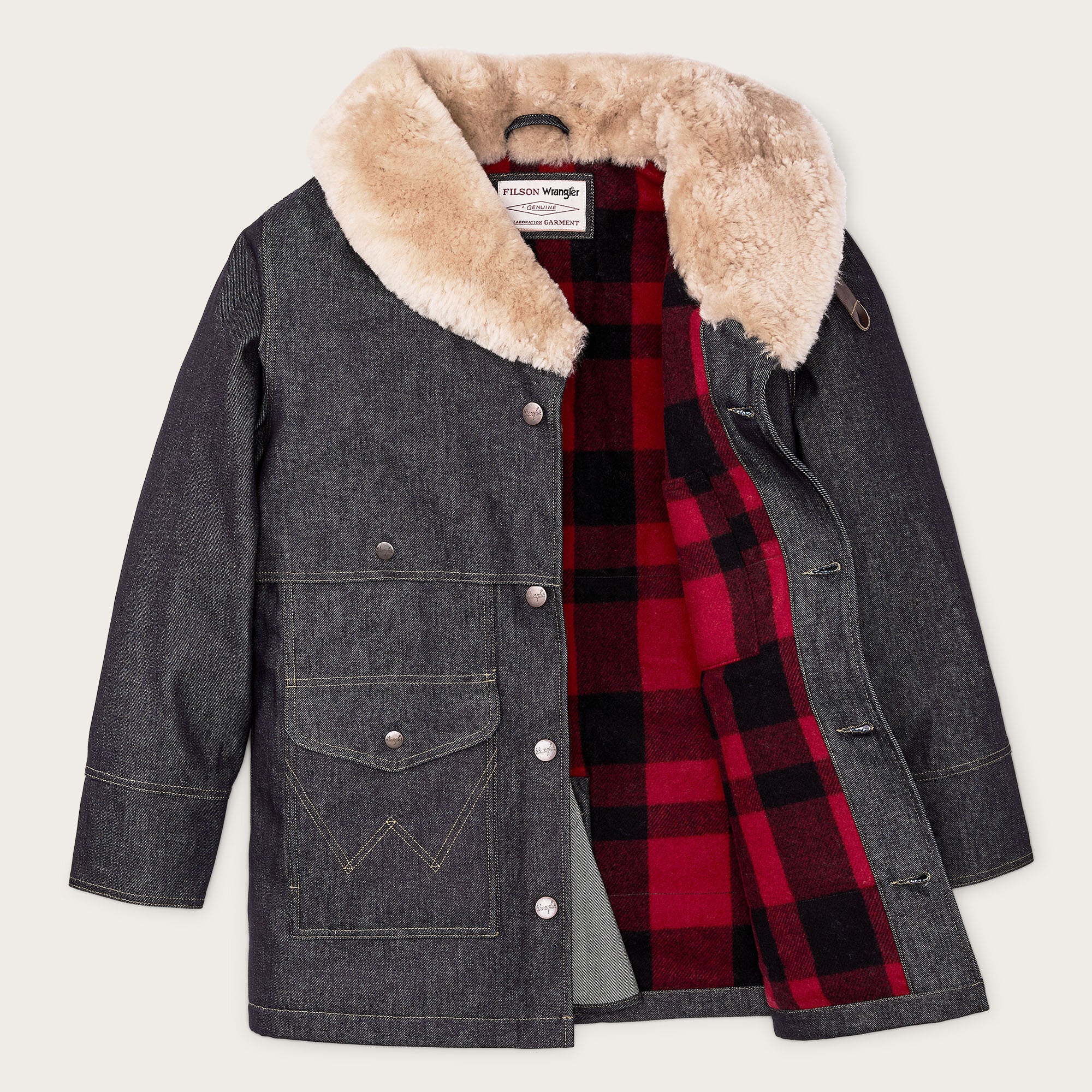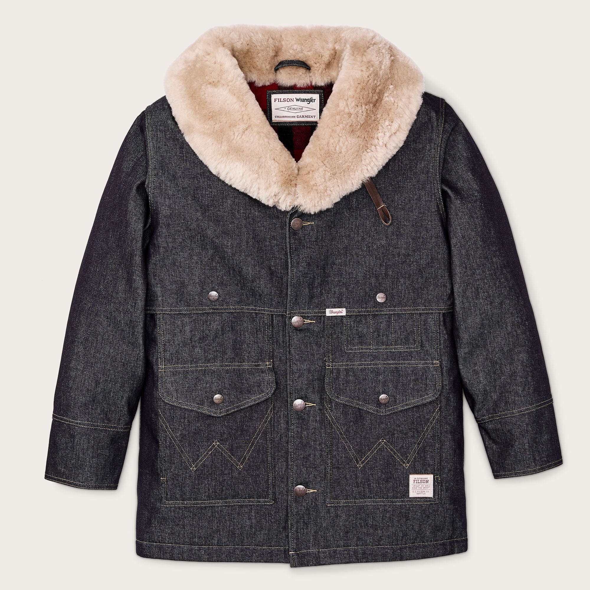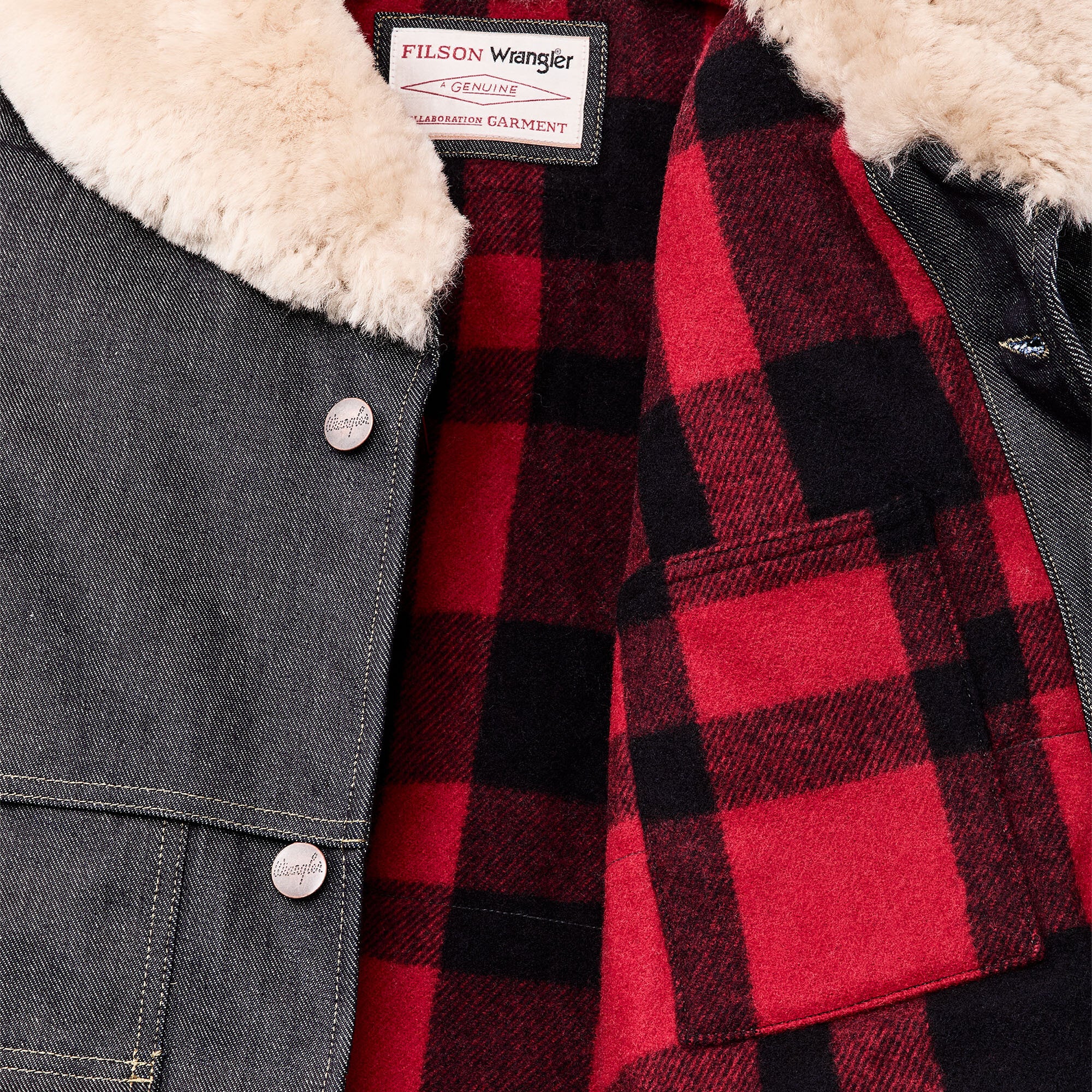 Fabriquée en denim Wrangler robuste de 411 g, cette édition spéciale de la veste Packer est inspirée de notre manteau de rancher emblématique. Le torse est doublé de notre emblématique Laine Mackinaw, qui apporte de la chaleur dans l'arrière-pays depuis plus d'un siècle. Les manches sont doublées d'une isolation PrimaLoft légère pour une chaleur qui se glisse facilement par-dessus les couches. Le col châle en peau de mouton et en shearling monte jusqu'à la hauteur des oreilles pour tenir chaud en cas de vent et de froid mordants. Quatre poches cargo avant sont couvertes par des rabats à pression, et la poche arrière pleine largeur est suffisamment grande pour les objets encombrants. Des boutons en métal pratiquement incassables assurent la fermeture du devant et des poignets. Broderie Wrangler signature sur les poches. Longueur des manches jusqu’au bout des doigts.
