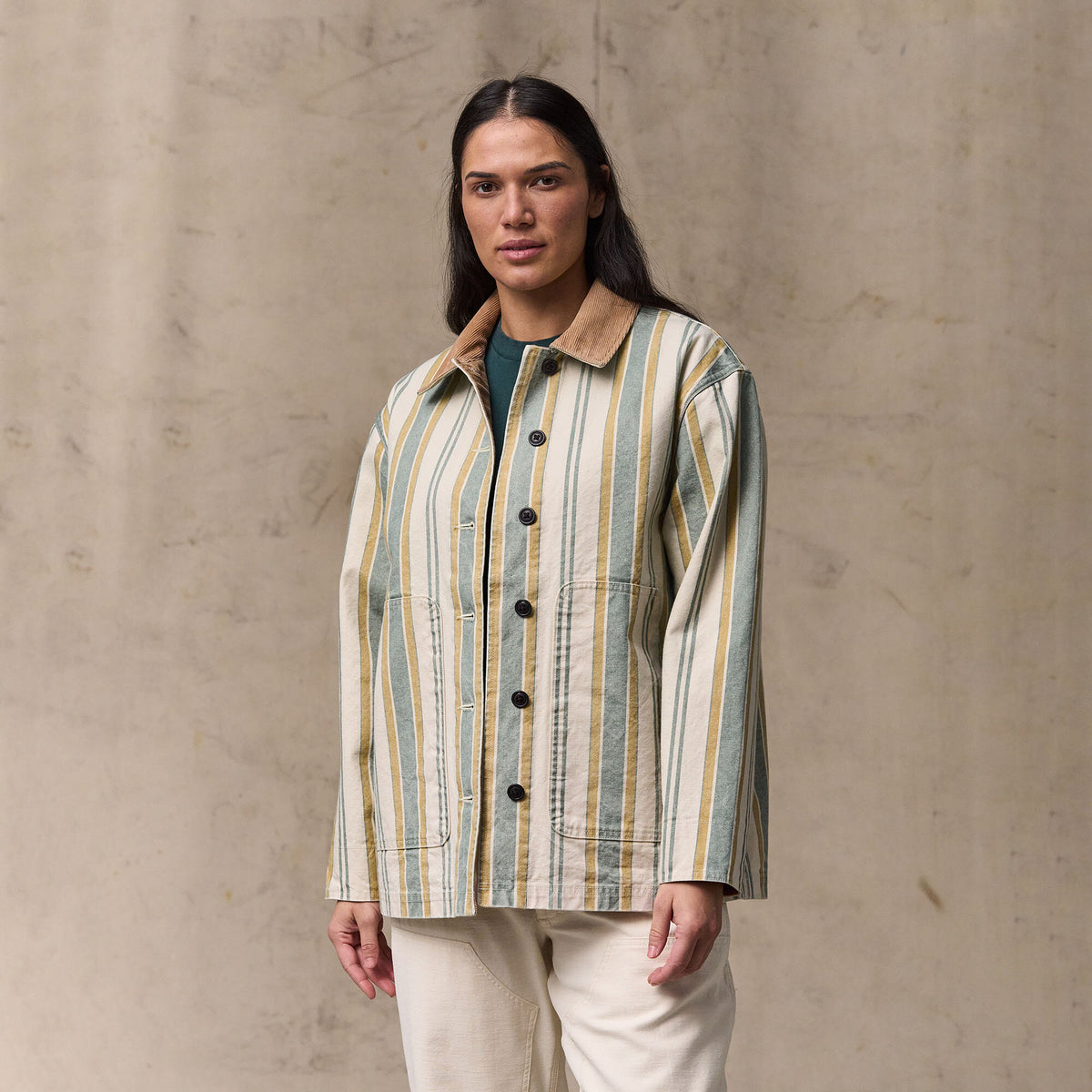 Ce modèle classique offre une protection fiable contre le vent, les broussailles et les ronces. Caractérisé par sa simplicité, il fonctionne tout aussi bien pour une utilisation quotidienne. La toile résistante acquerra un caractère usé par le temps et patiné par l'usage, pour des décennies d'utilisation polyvalente. Le col, les poignets et la patte de boutonnage frontale sont doublés d'un épais velours côtelé de coton pour plus de confort. La coupe décontractée est ample, donc si vous êtes entre deux tailles, nous vous recommandons de commander la taille la plus petite.
