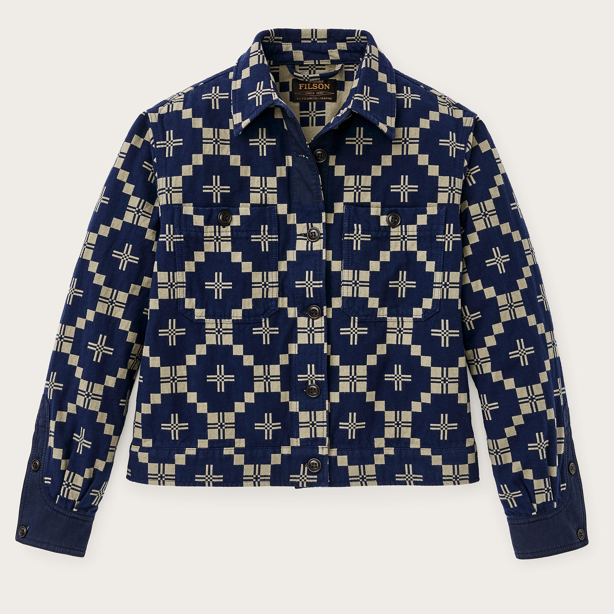 La veste courte Colchuck pour femme, qui présente une longueur à la taille, est conçue pour le confort par temps printanier changeant. Elle est cousue à partir d'un double tissu de coton 255 g, brossé pour plus de douceur et tissé avec un motif jacquard graphique. Le tissu est suffisamment solide pour durer dans le temps, mais assez léger pour être porté du début du printemps jusqu'aux fraîches soirées d'été.