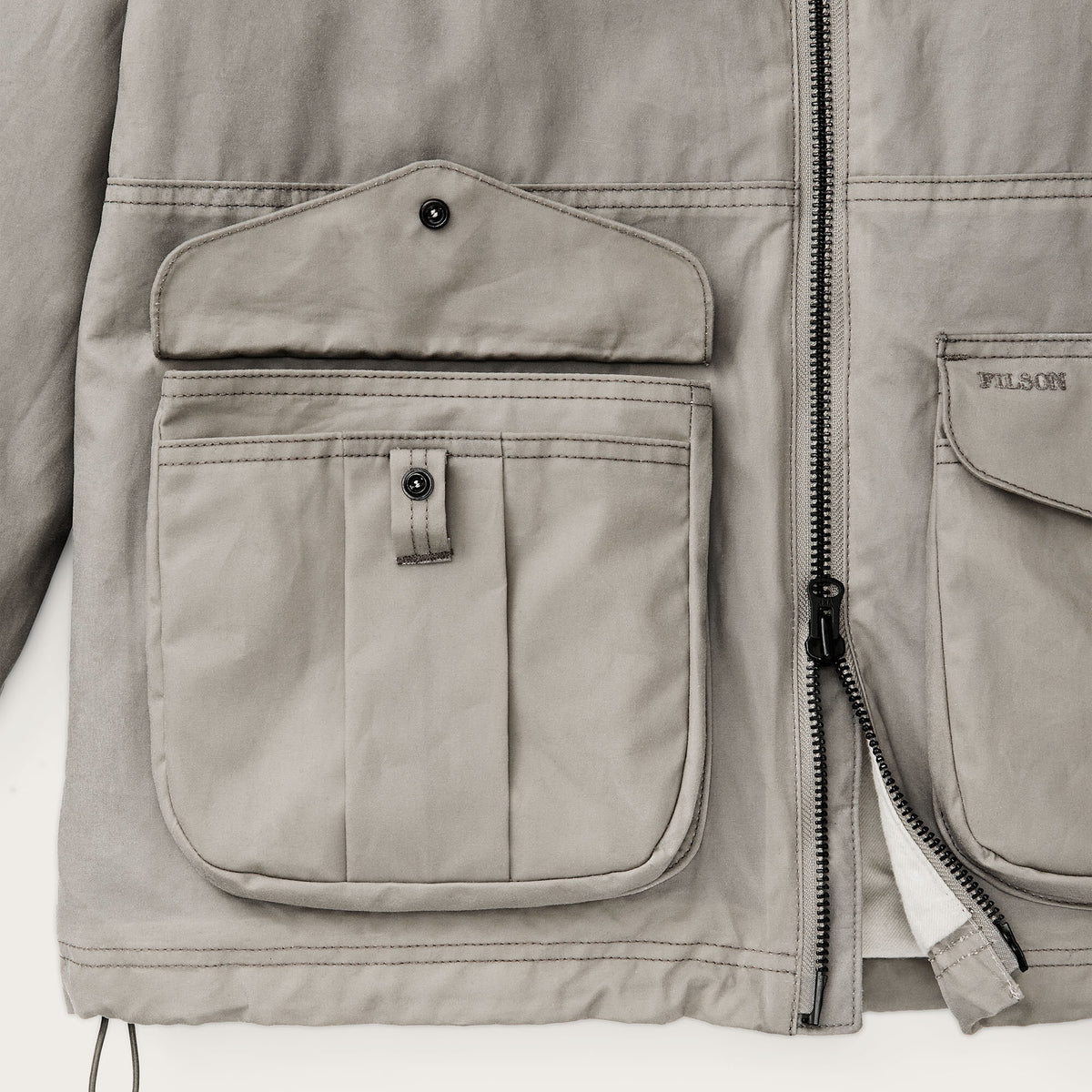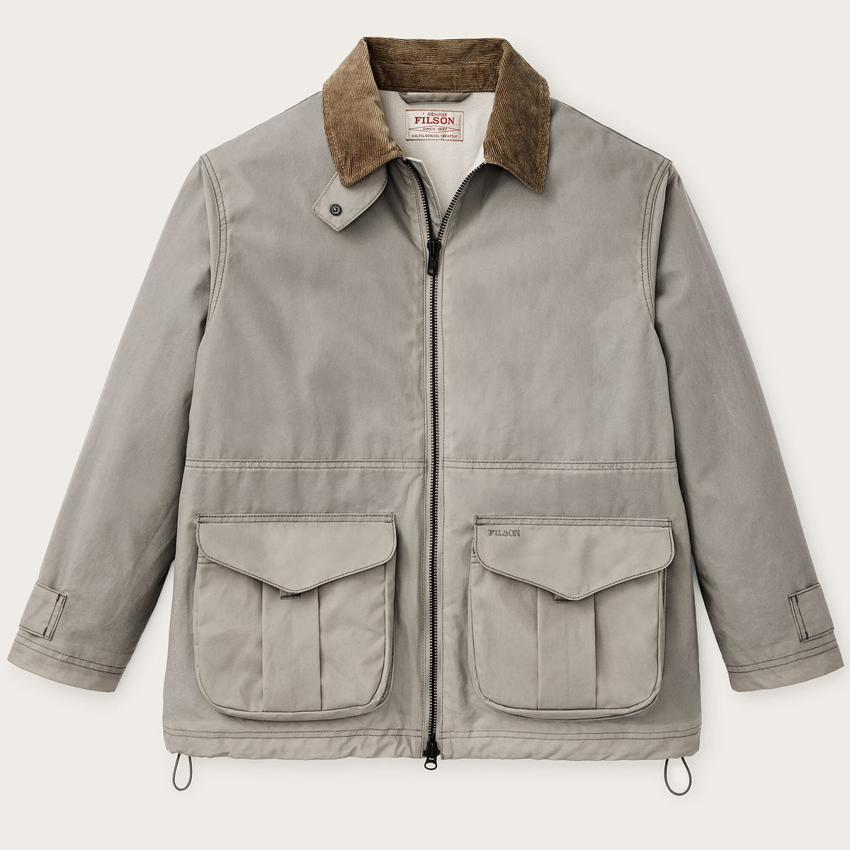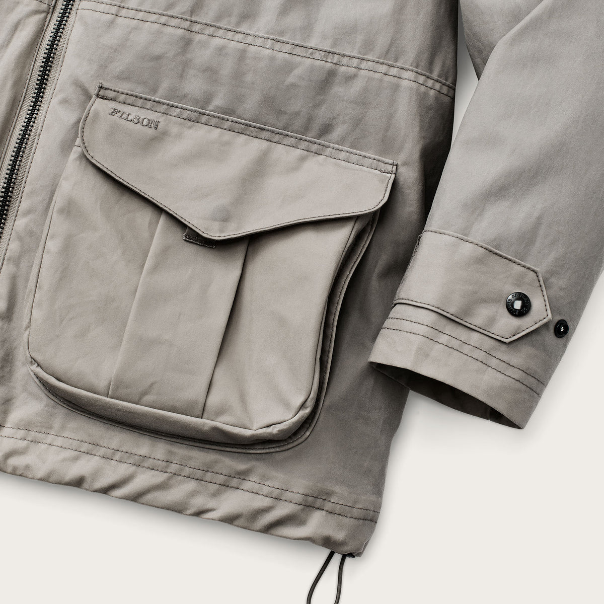 Fabriqué avec notre coton ciré Cover Cloth, cet imperméable s'inspire d'un modèle favori de nos archives. Le torse est doublé d'une toile légère et les manches d'un polyester facile à superposer. Les grandes poches cargo extensibles offrent beaucoup d'espace pour les objets essentiels et sont protégées par des rabats à pression. Le col est doublé de velours côtelé pour le confort de la peau et peut être fixé à l'aide de la patte de fixation à bouton-pression au niveau du cou. Fermeture éclair bidirectionnelle sur le devant. Poignets réglables par boutons-pression.