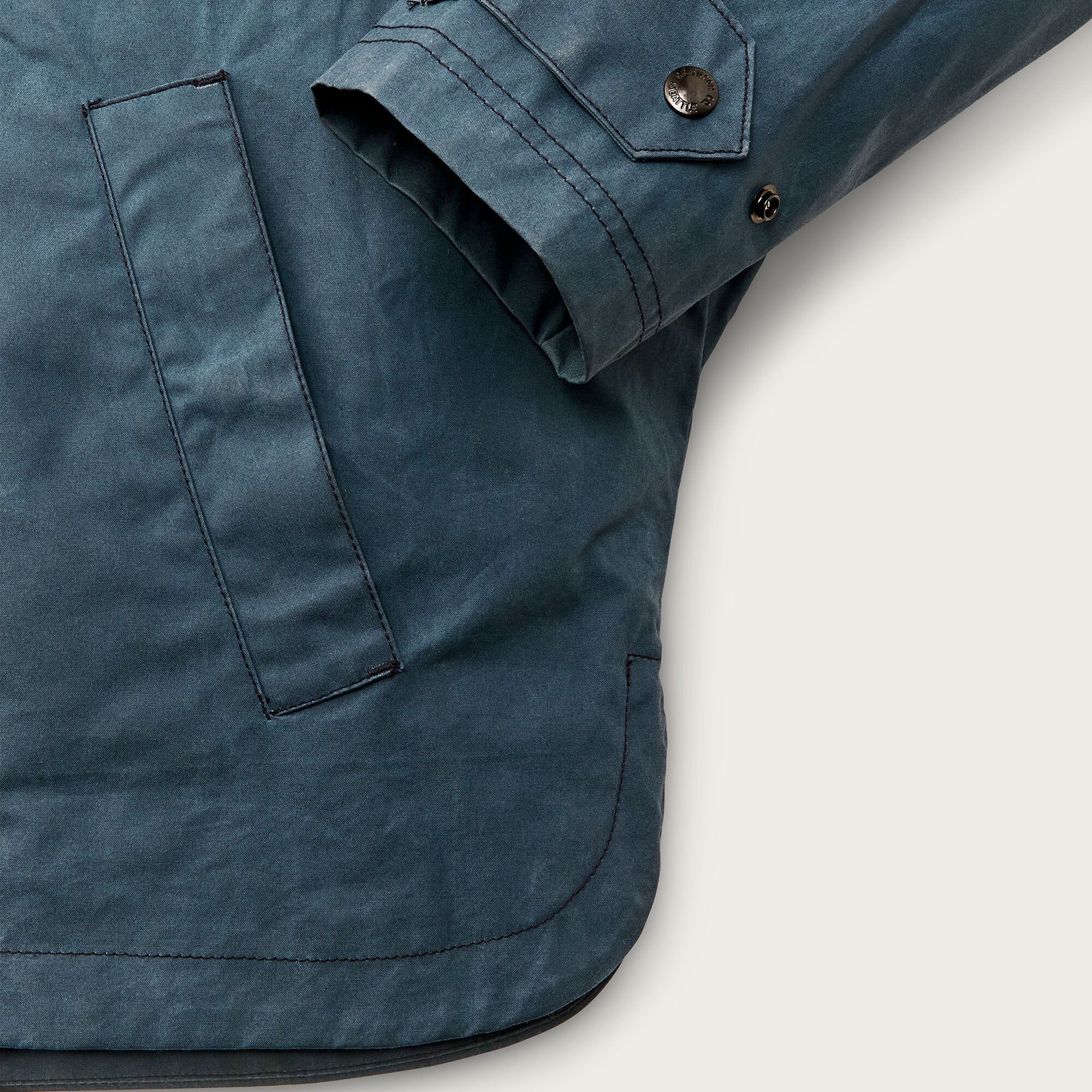 La veste Harbor Front Jacket est fabriquée dans notre emblématique coton ciré, qui protège de la pluie et de la neige. Sa construction en forme de cape élimine les coutures d'épaule apparentes, empêchant l'eau de passer à travers. Dedans, elle est doublée de notre flanelle Alaskan Guide, à laquelle les éleveurs et les pilotes de brousse font confiance depuis des décennies.