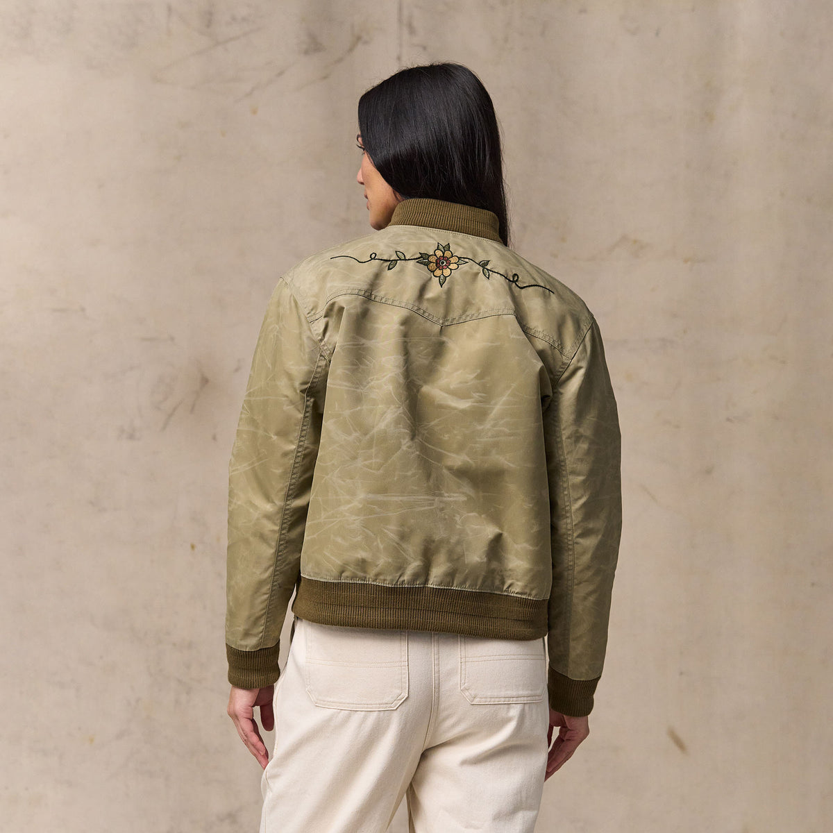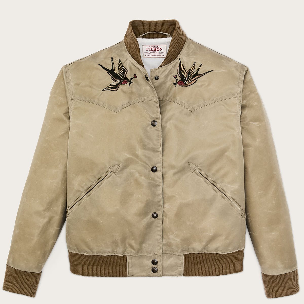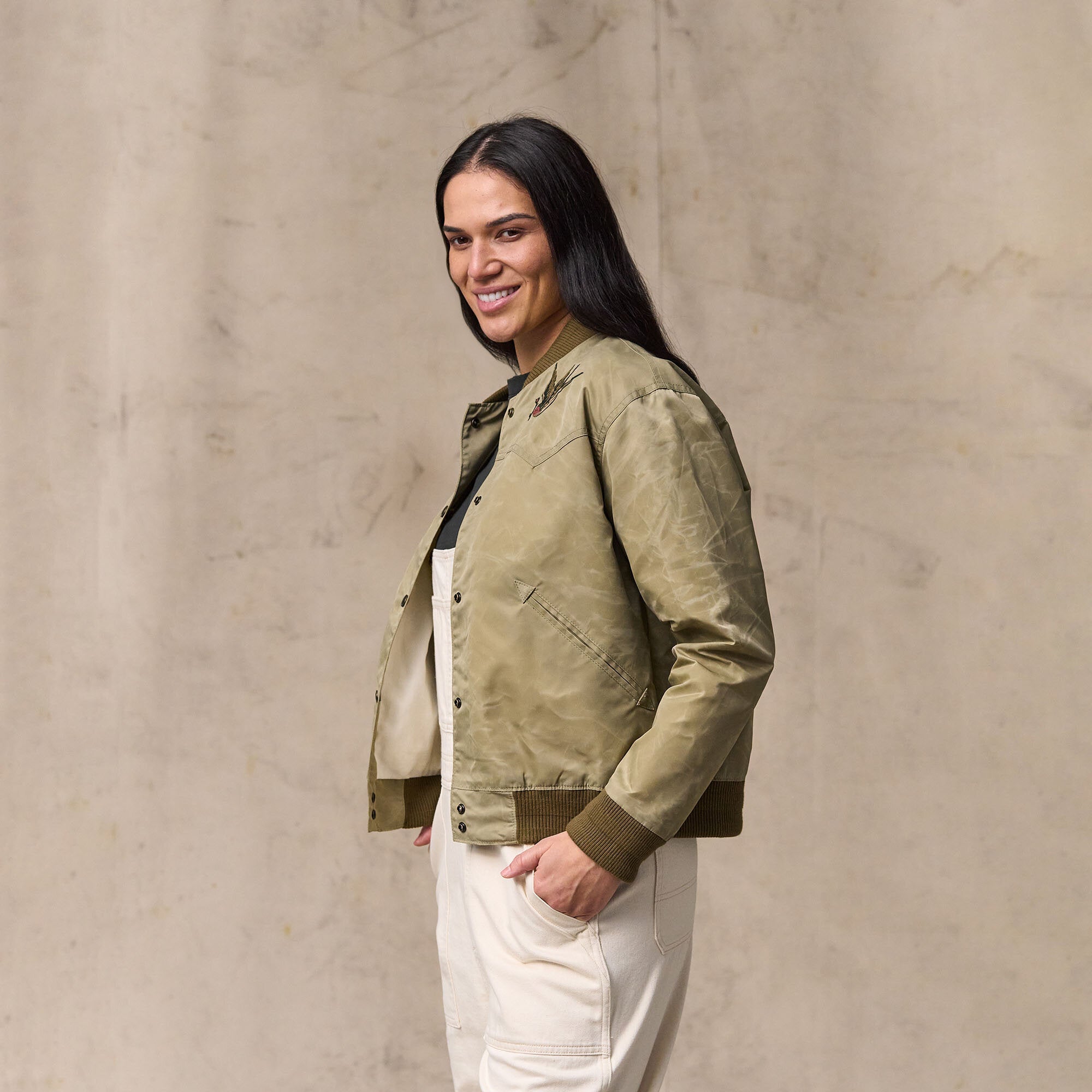 La veste Western Satin pour femme donne du caractère à un vêtement polyvalent de tous les jours. Elle est fabriquée en satin de nylon léger, ciré à sec pour une légère résistance à l'eau. Ce tissu polyvalent est doux, respirant et entièrement lavable.